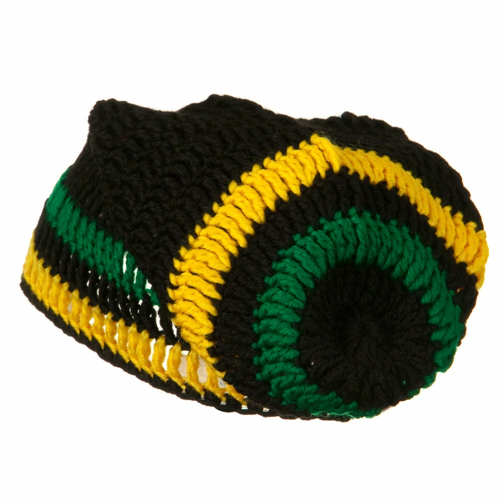 Try our Rasta Knitted Big Skull Beanie. This intricately knitted beanie features roomy crown that will fit up to XXL head size. Featuring plenty of space inside the hat, this beanie offers relaxed, comfortable fit. Great for all your winter outdoor activities, this flexible and soft big skull beanie sports rasta colored stripes around the crown. This skull beanie without brim can be worn on days you simply want to cover your head or when the mood strikes to show off your rasta spirit.