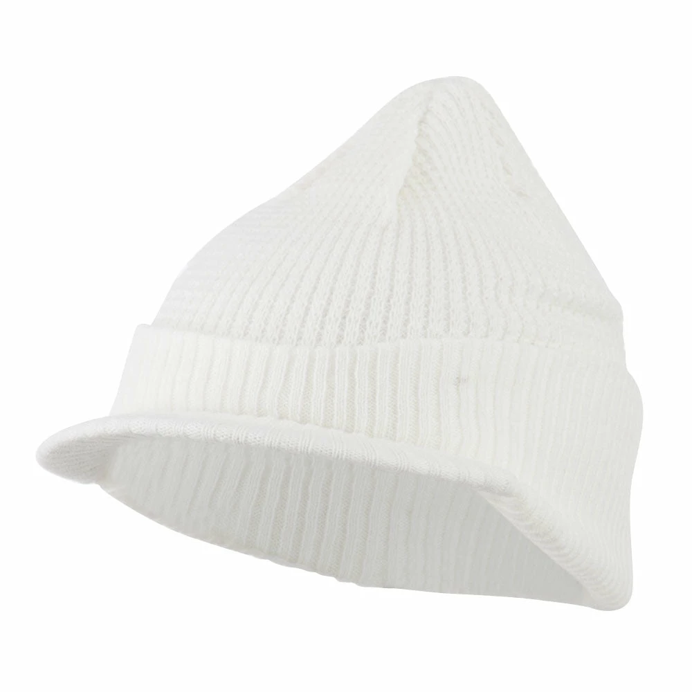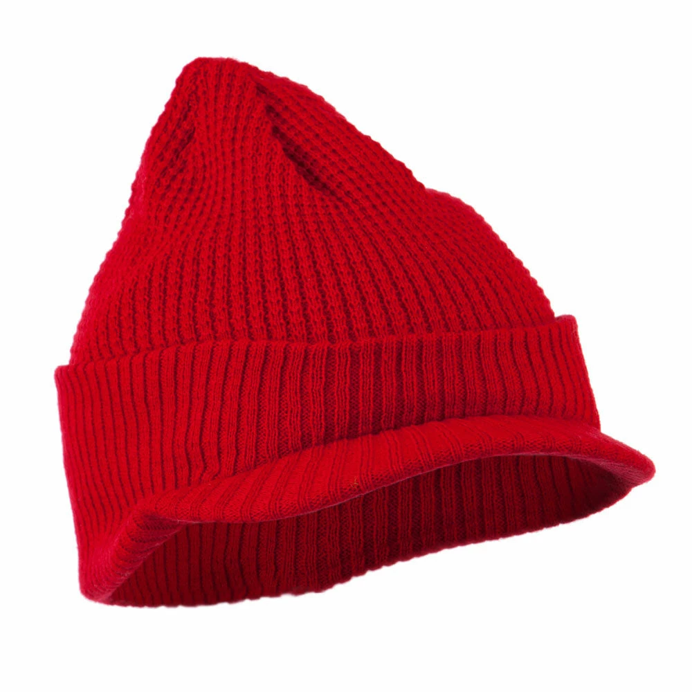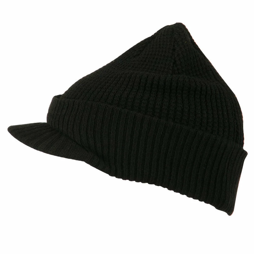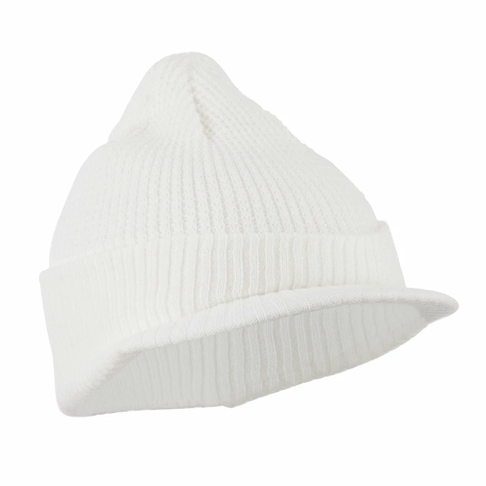 Solid in color, cuff visored beanie hat for everyone.