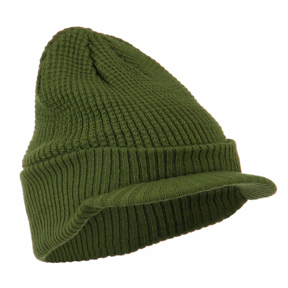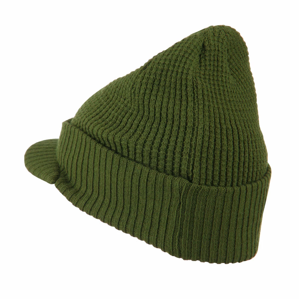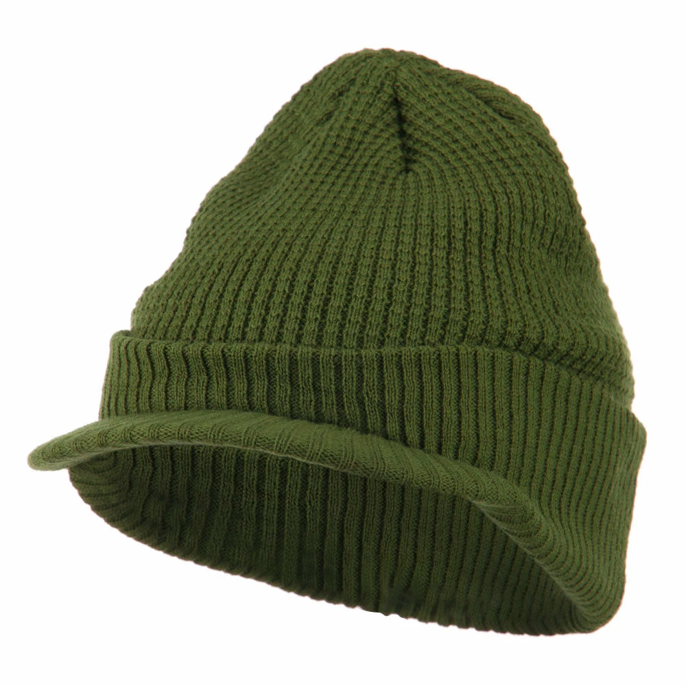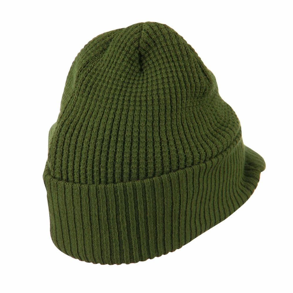 Solid in color, cuff visored beanie hat for everyone.