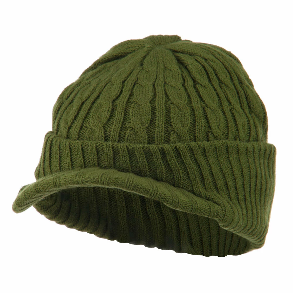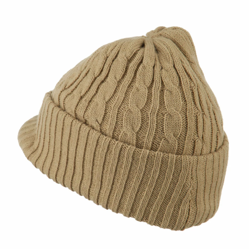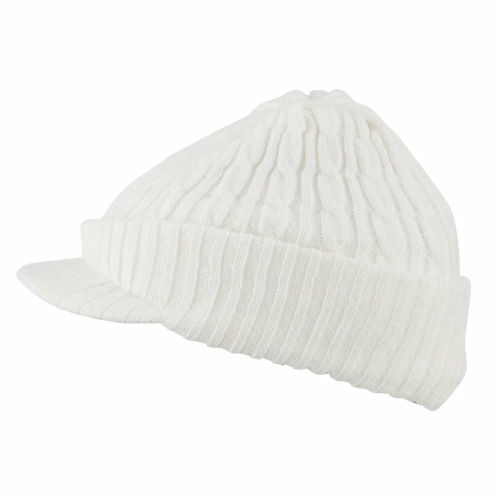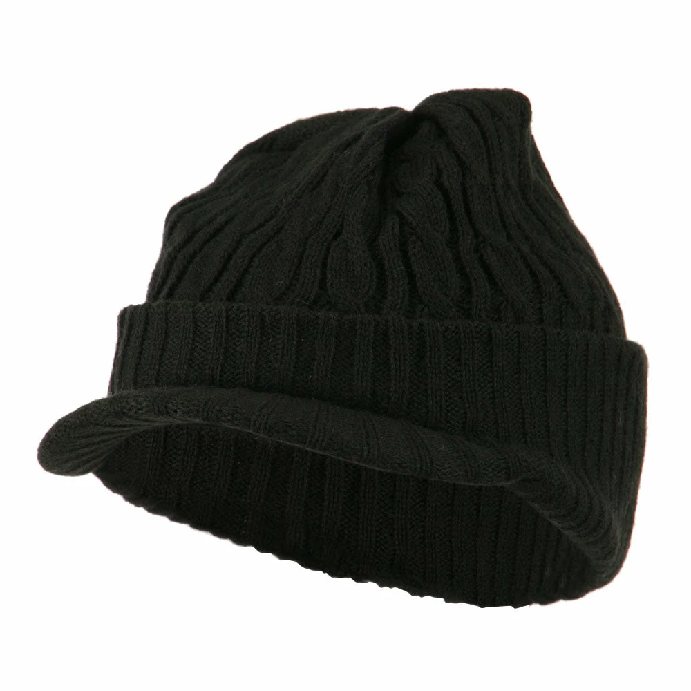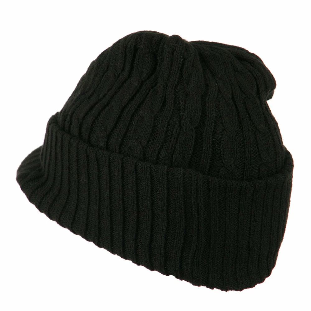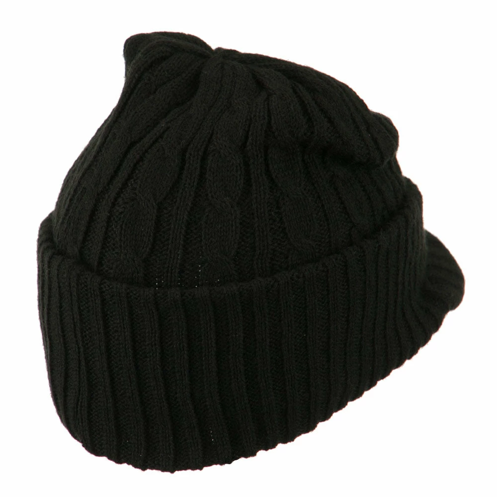 City Hunter Twist Knitted Cuff Beanie With Visor