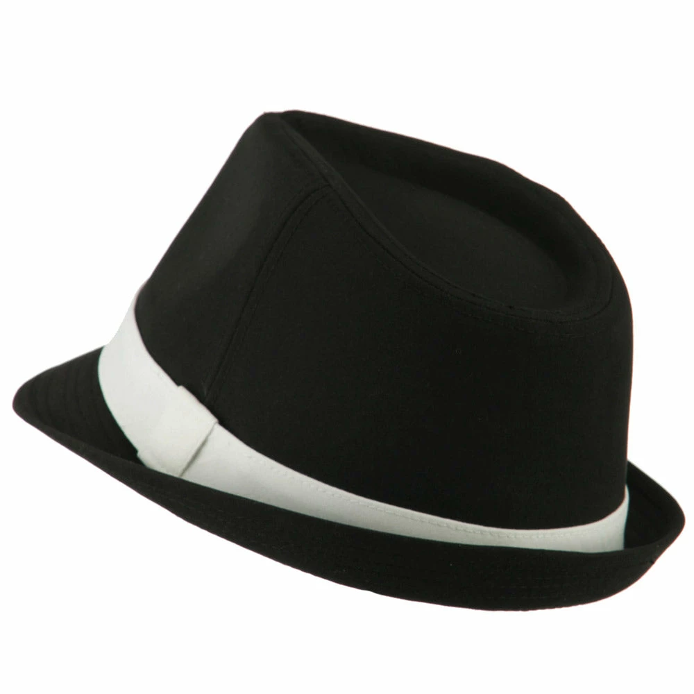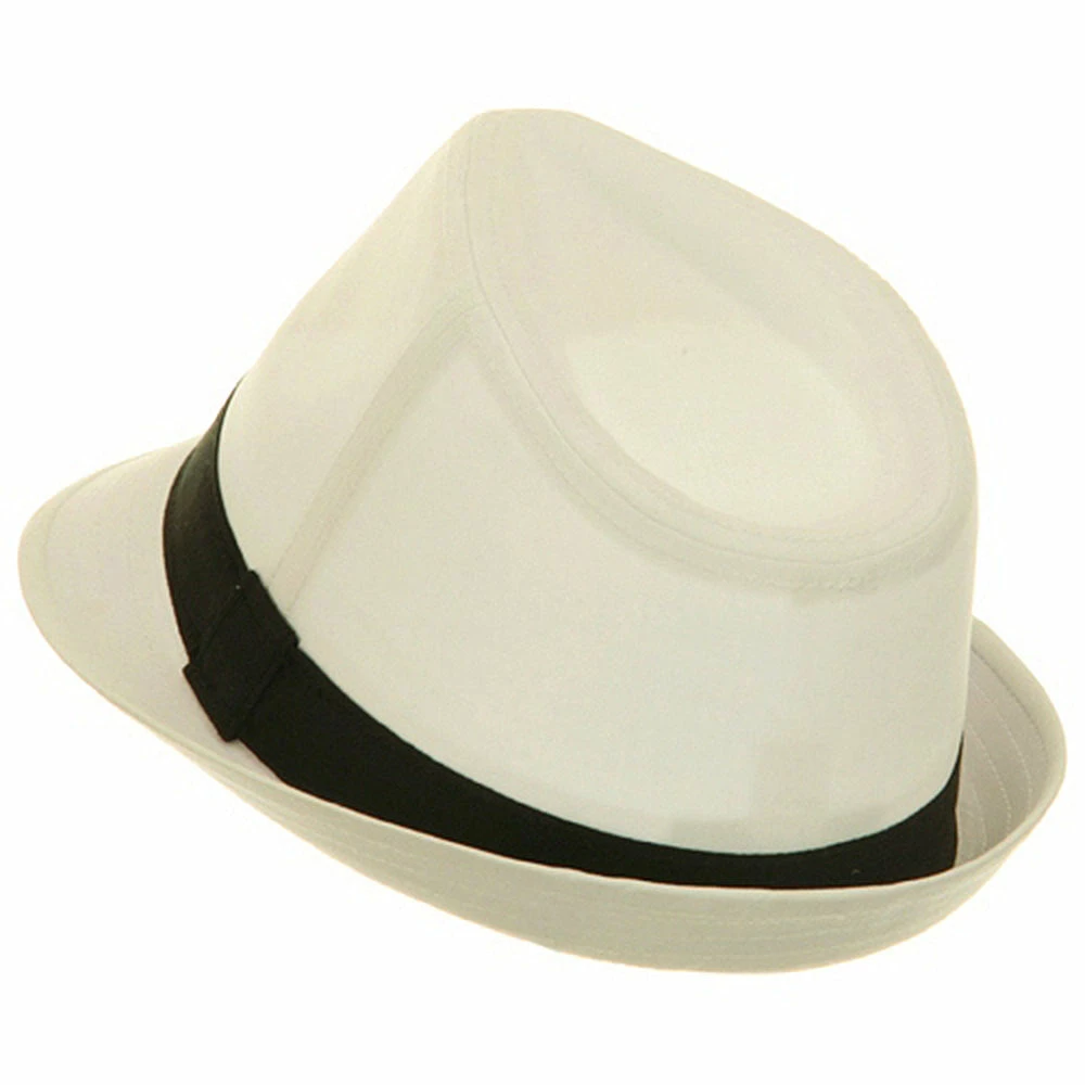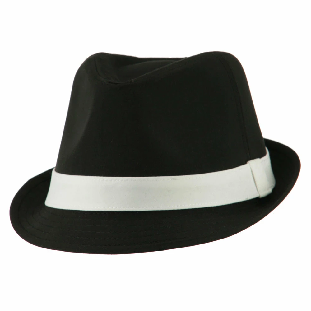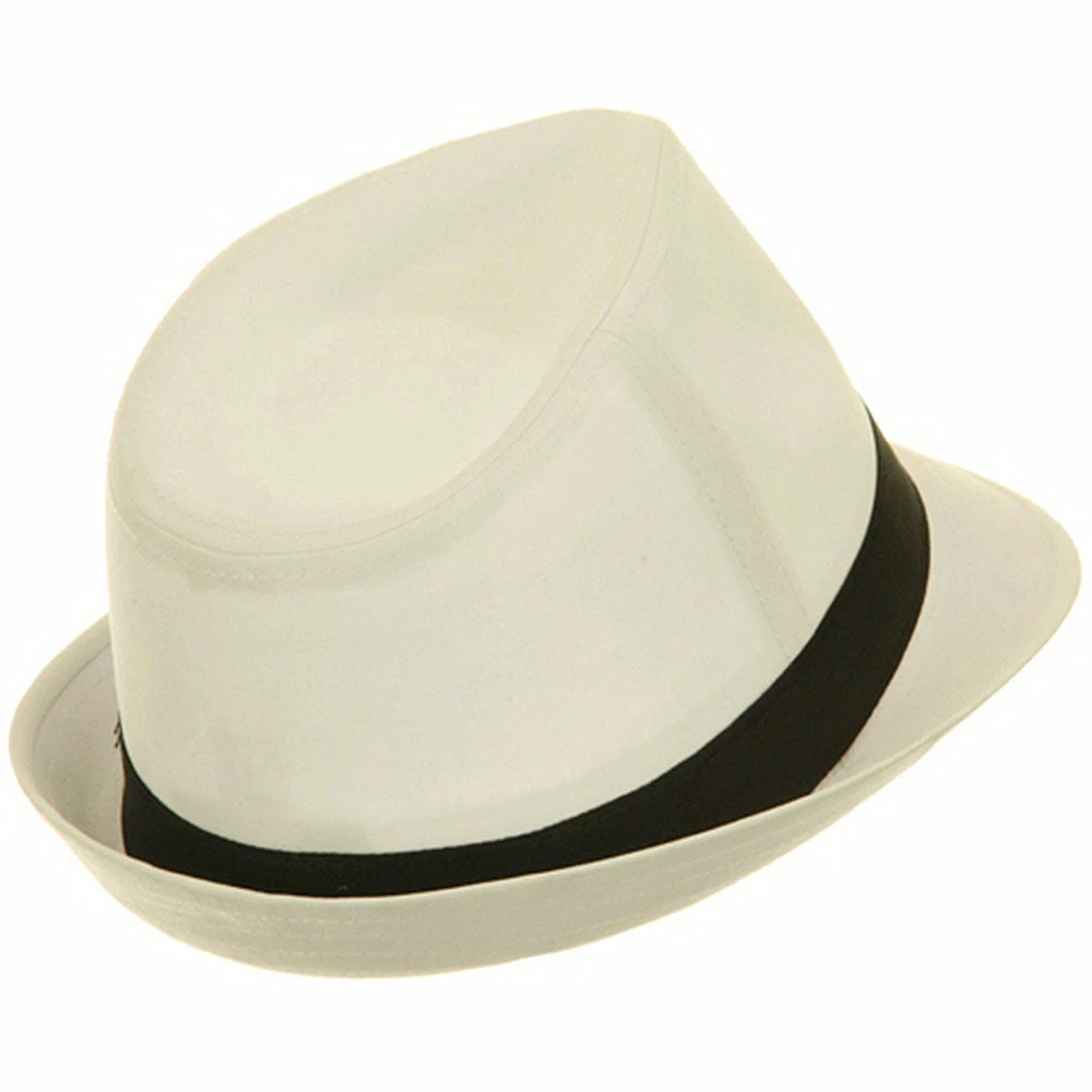 Just a fashionable as they were in the past, our Black White Basic Poly Woven Fedora Hat is sure to be one of this season’s biggest sellers. Made from stiff material, this fedora offers classic look on you and hat matches in all seasons. Solid in color white, fedora is sophistically accented by black hat band. Topping off the hat with classic mobster flair is 1 1/2 inches wide brim, with, naturally a turned up backside. Wear this hat with a suit, slacks, skirt or jeans, not matter what it will always give you a look retro look that never goes out of fashion.