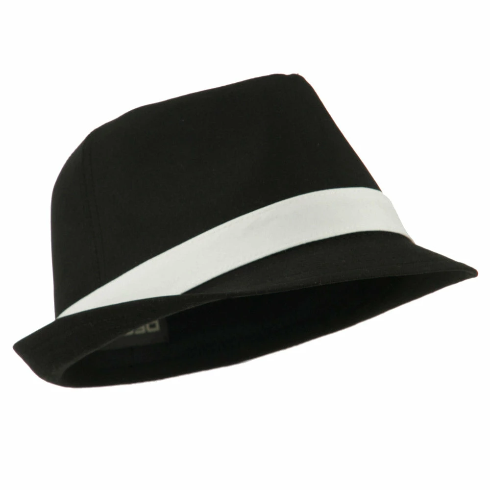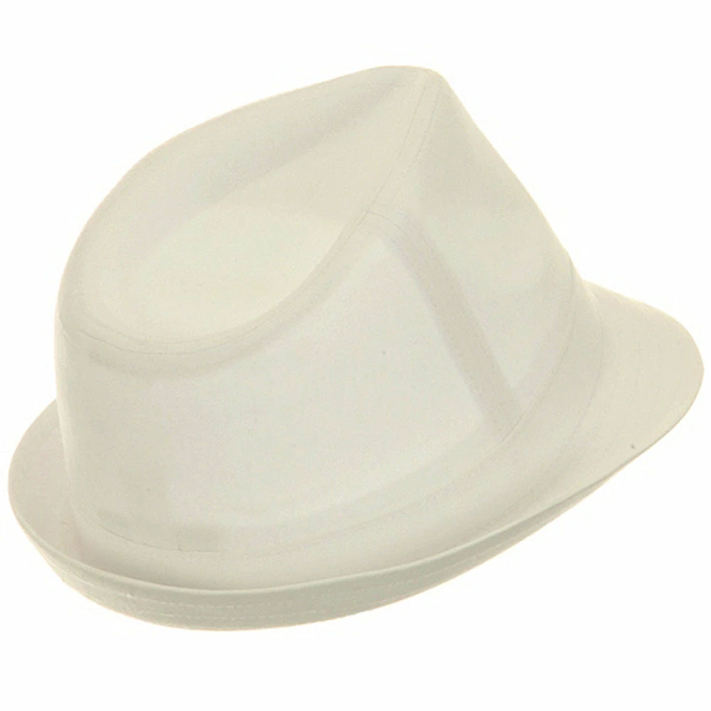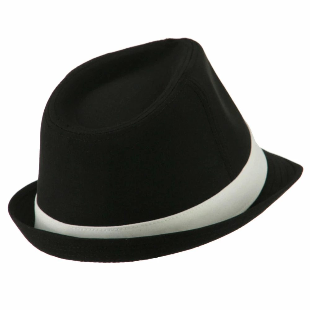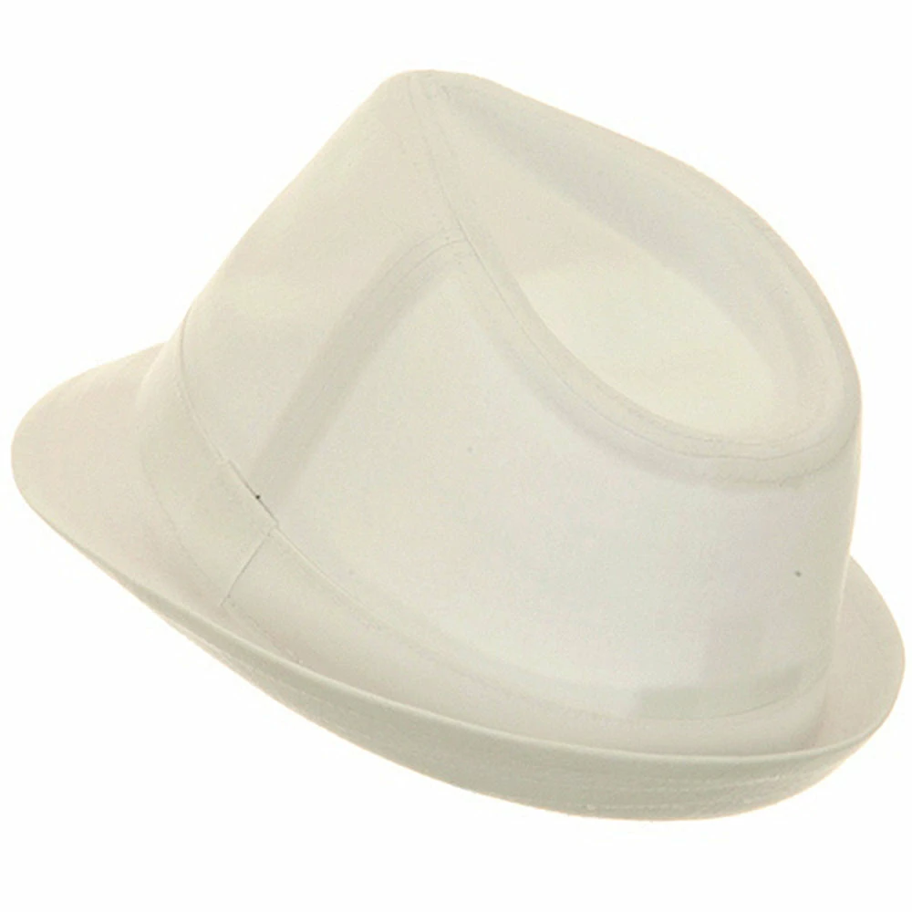 Just a fashionable as they were in the past, our Black White Basic Poly Woven Fedora Hat is sure to be one of this season’s biggest sellers. Made from stiff material, this fedora offers classic look on you and hat matches in all seasons. Solid in color white, fedora is sophistically accented by black hat band. Topping off the hat with classic mobster flair is 1 1/2 inches wide brim, with, naturally a turned up backside. Wear this hat with a suit, slacks, skirt or jeans, not matter what it will always give you a look retro look that never goes out of fashion.