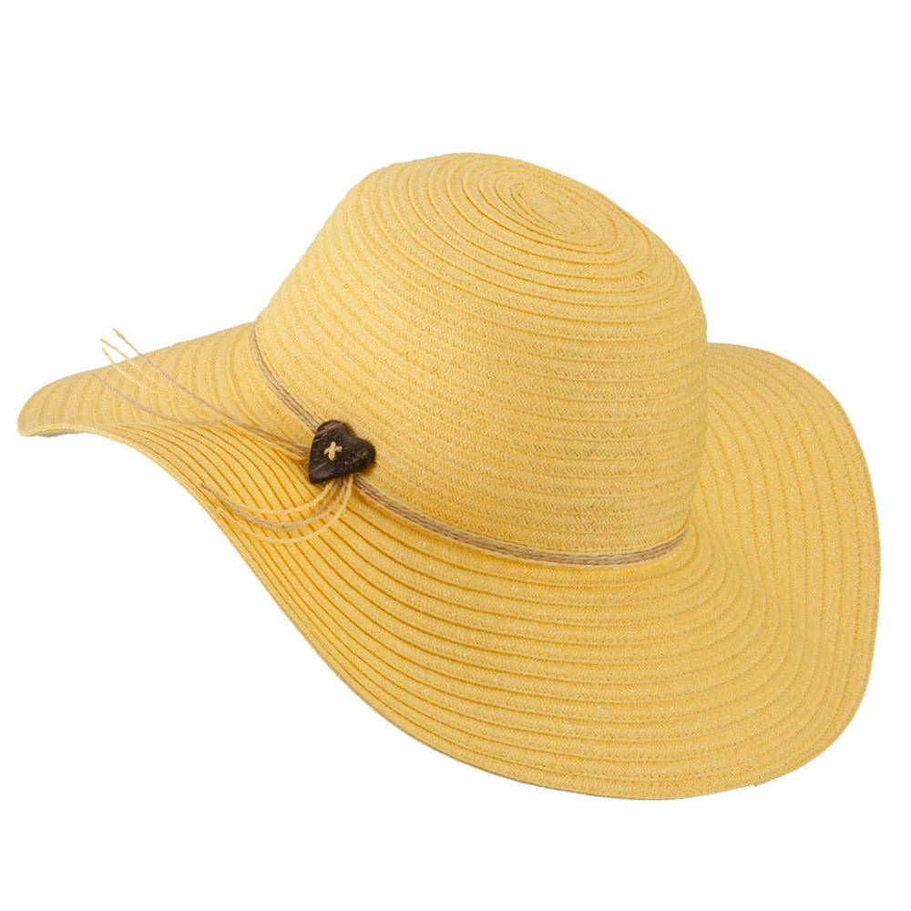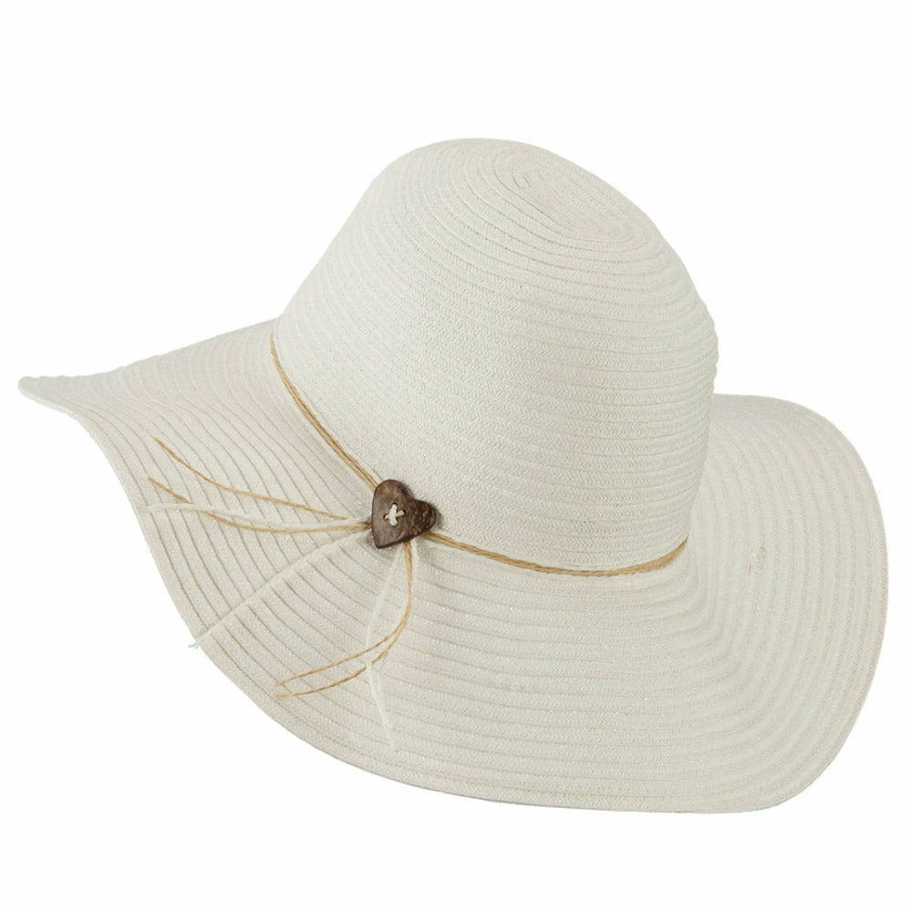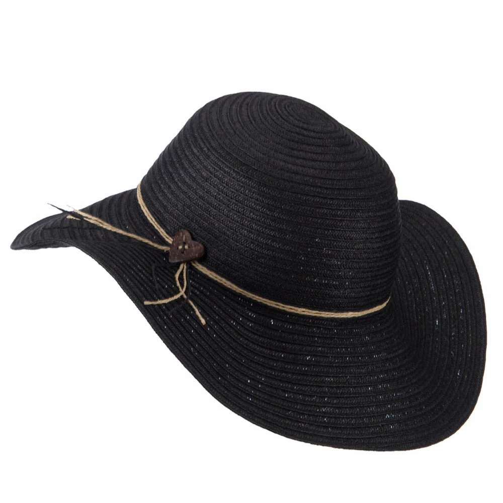 Our Coconut Band Floppy Hat is a woman’s lovely summer hat with its fashionable color. This paper straw material of hat always keeps your head in cool condition at all times. This short and floppy brim provides you enough sun protection during your activities. Solid in color, crown of hat is accented with string ribbon hat band with heart shaped decoration. This ladies summer hat is idea to wear during the day or even for midsummer night. This hat promises to keep you looking cool and stylish this spring and summer. Check out our other beautiful colors for this floppy hat as well.