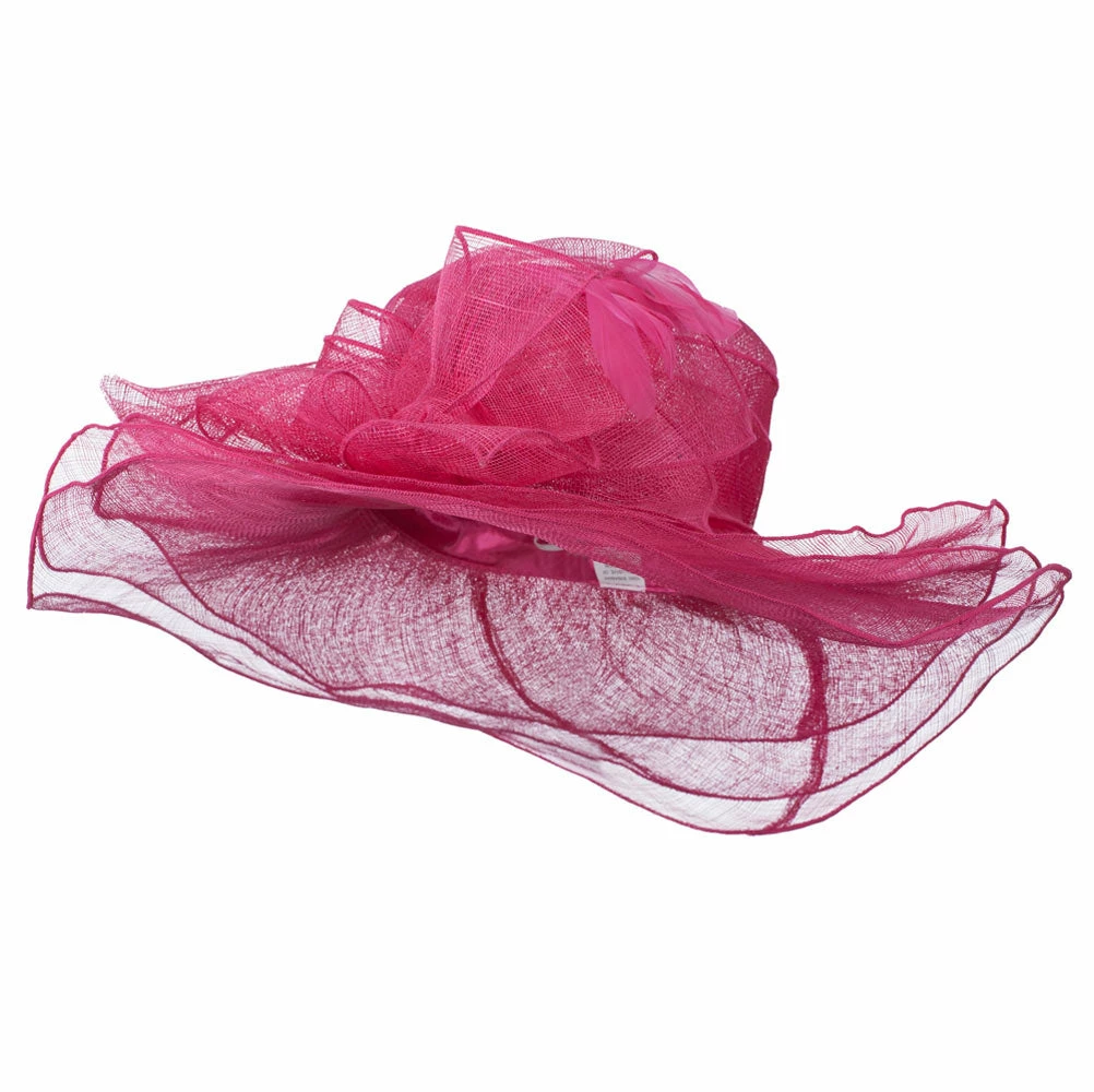 Our 3 Layers of Ruffled Brim Sinamay Hat is high quality ladies fashion hat this summer. This highly decorative sinamay hat is excellent for special occasions and outdoor events such as weddings, church, tea outings, garden parties, lunch dates and others. Crown of hat sports a large decoration hat band on one side of hat. This hat band is adorned with big bow and feathers, adding elegant style to the hat. Also, this hat features 3 layers of ruffled brim for more of dressy look. This fashionable sinamay hat not only keeps your head in cool condition throughout summer but also offers you gorgeous look for your special outings. You can find our ladies fashion hats in our other amazing styles and colors as well.