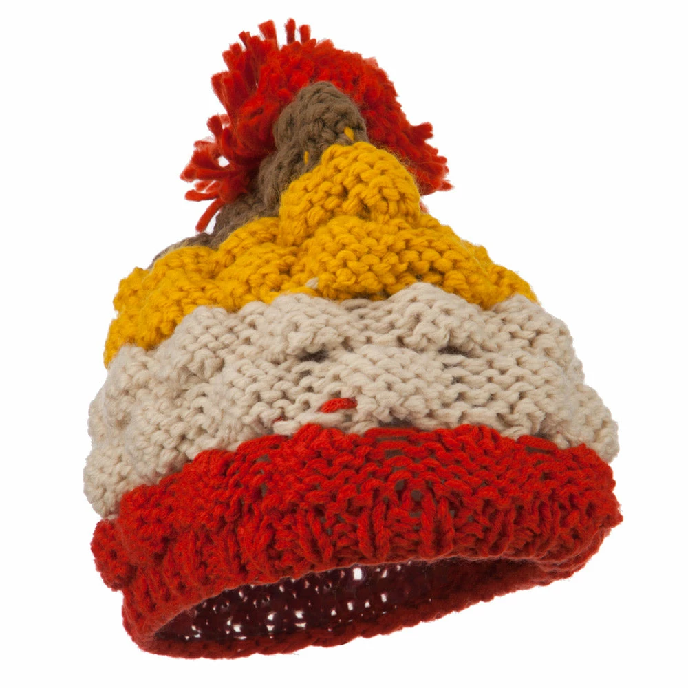 Acrylic Striped Pom Pom Beanie