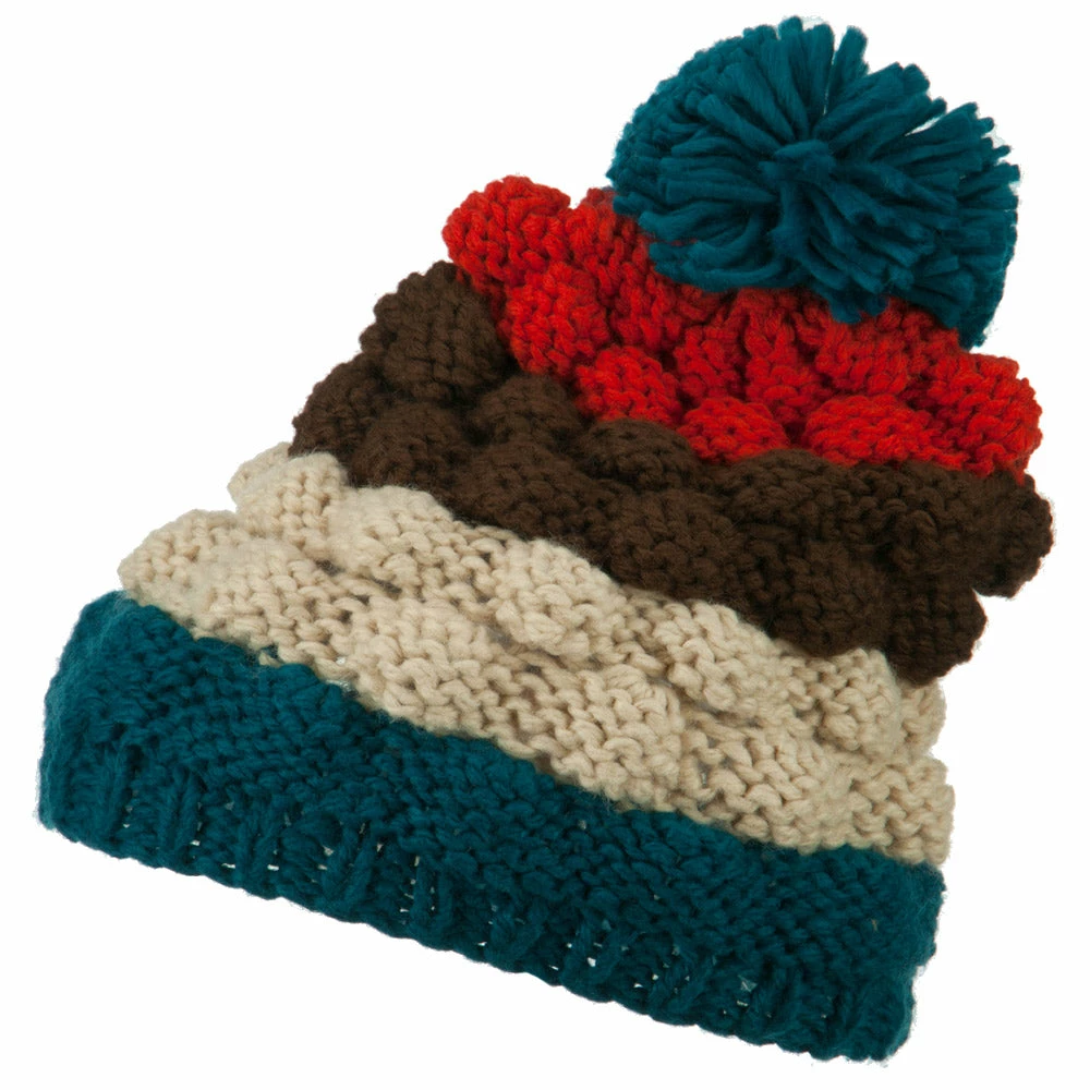 Jeanne Simmons Acrylic Striped Pom Pom Beanie -Adams Shop as002ms teal 4