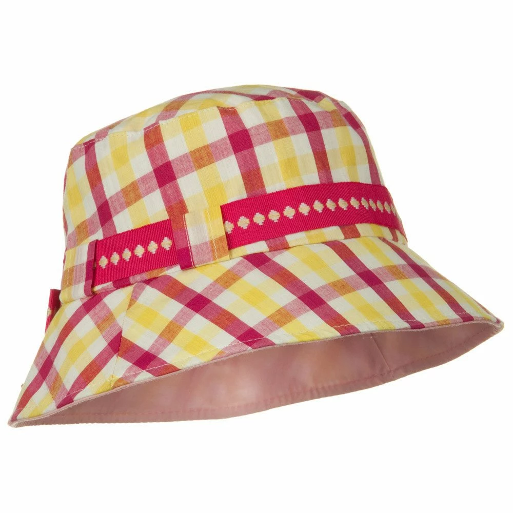 Does your girl (or you) love pink? If she does, take a moment to take a look at the Girl’s Checkered Floppy Hat! The pink plaid is cute and has a very happy vibe to it. It is a great hat for your daughter to wear on your next outing! Whether you’re going to the mall or to the beach, this hat will make her look adorable and provide her practical benefits against the sun. The bucket hat has a flat top and the extended brim provides ample shade from the sun. It also features a hatband through loops around the crown and features a solid color underside.