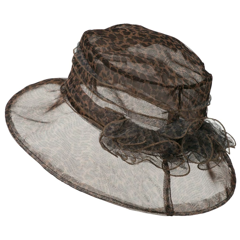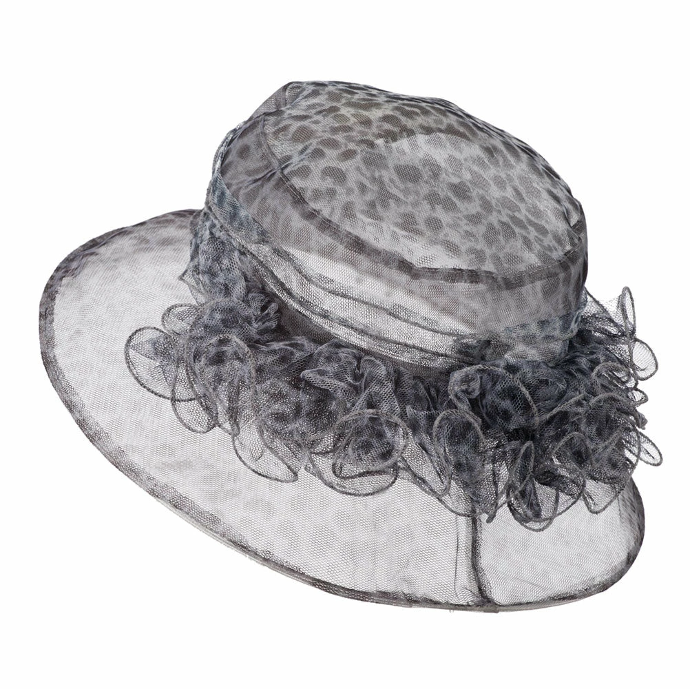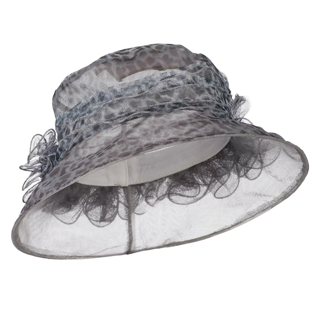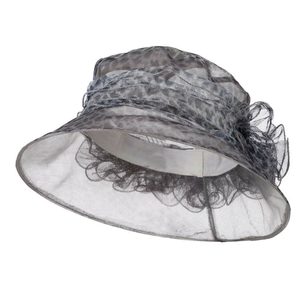 Our Leopard Print Ruffle Flower Organza Hat is amazing summer fashion for ladies. Featuring leopard print all around, this organza hat is especially great for those animal print lovers out there. You can wear this hat for all your special occasions and outdoor events. Wired brim of hat is slightly downturned for wonderful sun protection and classy look. Crown of hat is adorned with ruffled flower accent for more of decorative style. This gorgeous ladies organza hat keeps you looking stylish throughout summer while keeping your head in cool condition. Our ladies organza fashion hats come in other various designs and colors as well.