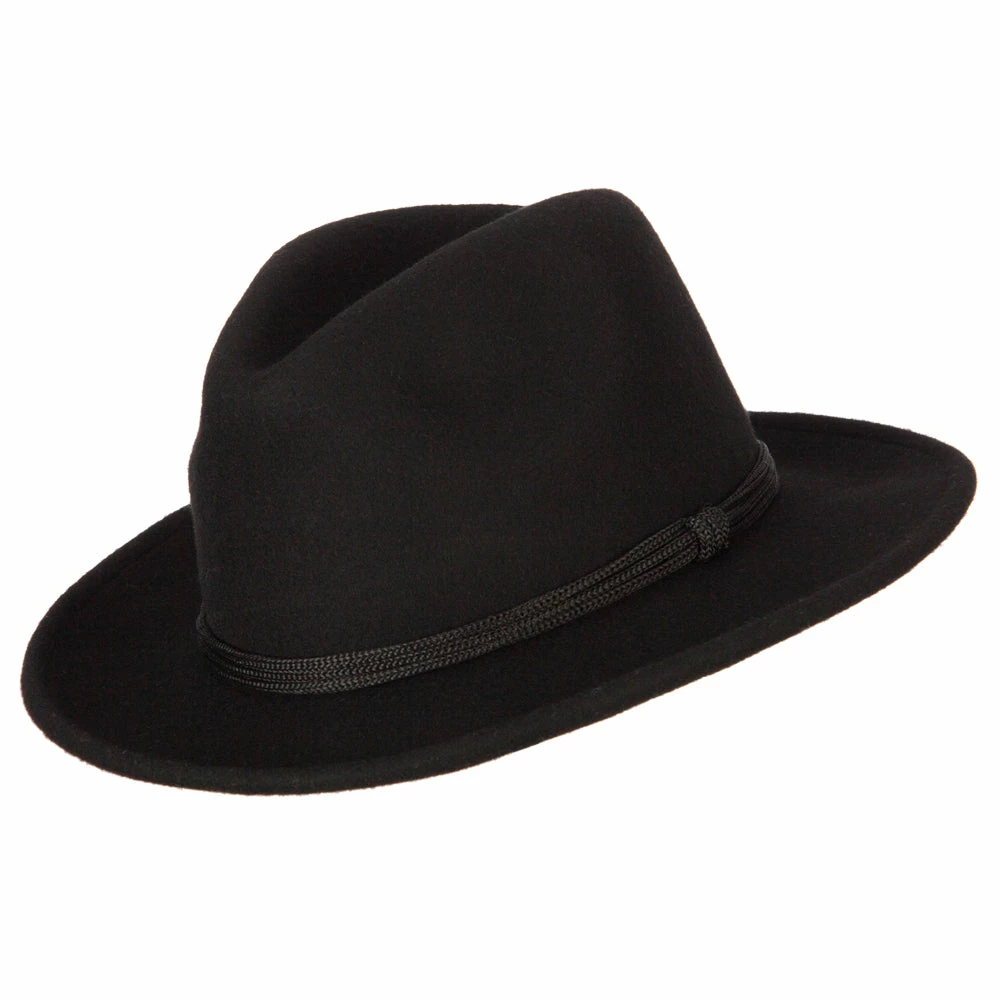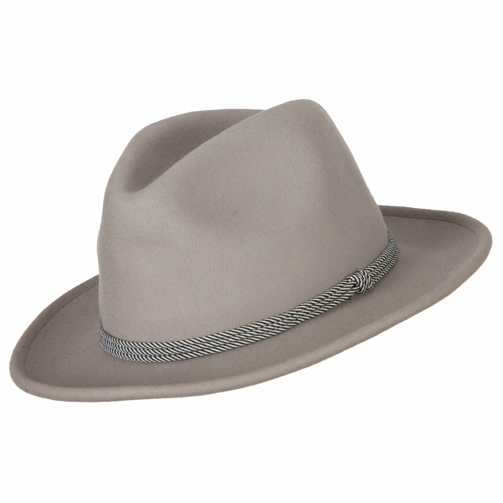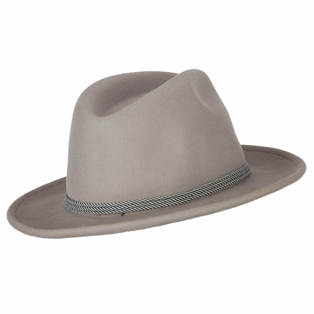 Unisex Wool Felt Satin Rope Band Trim Pinched Crown Fedora Hat
