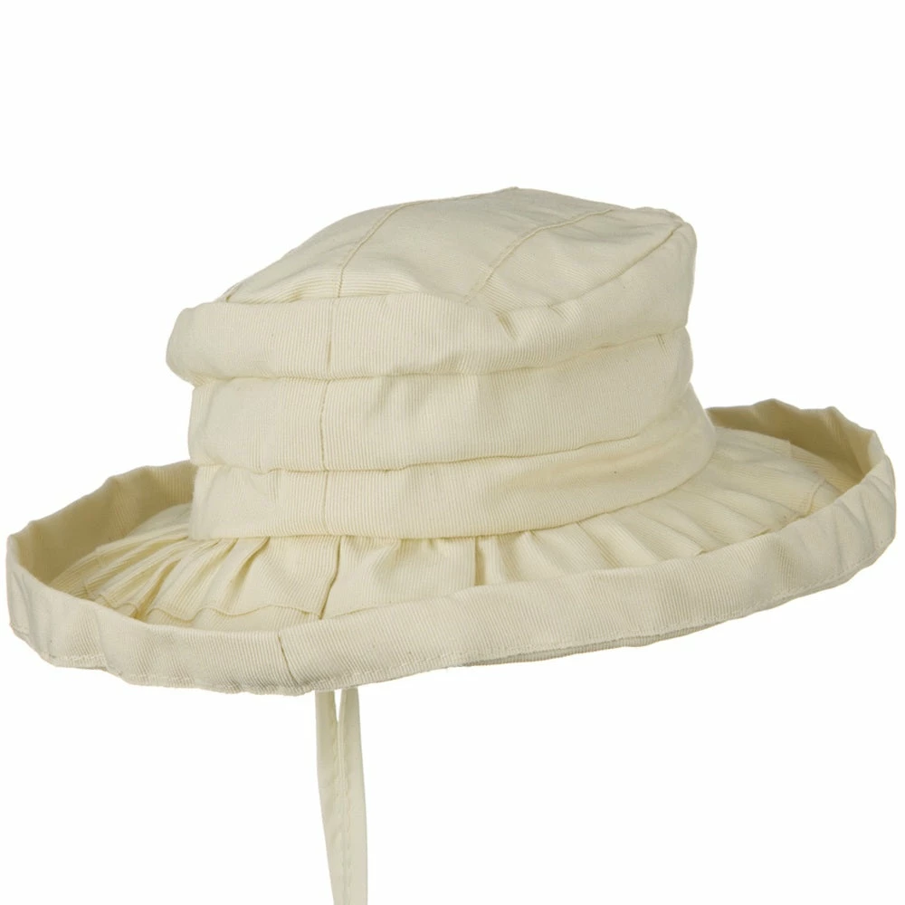 Simple in design solid in color, ourWoman’s Ribbon 3 Inch Brim Pleated Crown Hat is perfect casual days in any seasons. This lightweight woman’s bucket style hat features easily crushable and flexible material, so hat is easy to pack and carry around for your travelings and other occasions. As you can easily shape the hat the way you want, brim of hat can be rolled up or put downward as you wish for two different looks. Also, what is convenient about this hat is that adjustable string band is fitted inside, so anyone can fit on this hat with comfortable fit. Ideal woman’s hat for any ordinary days.