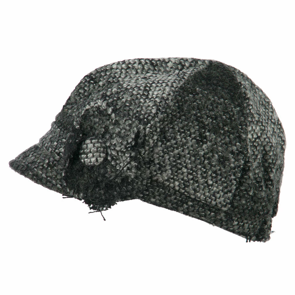 Flower accented cabbie hat for ladies.