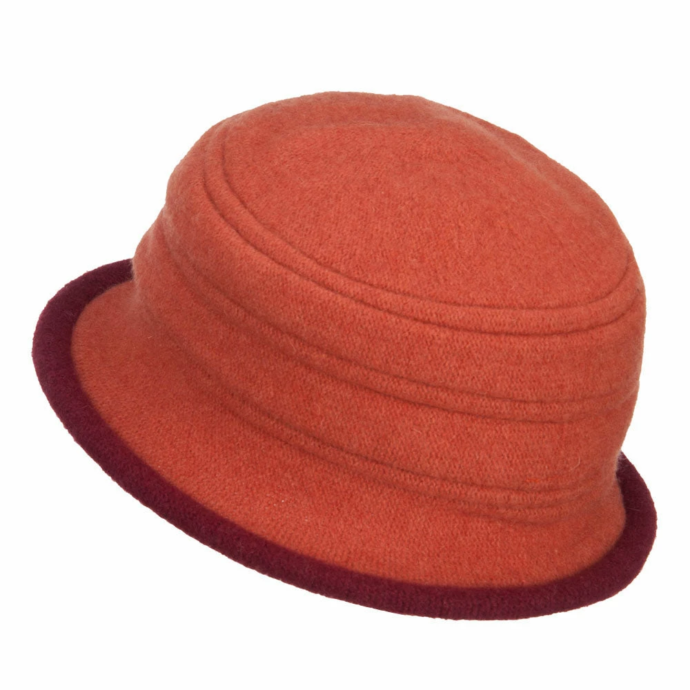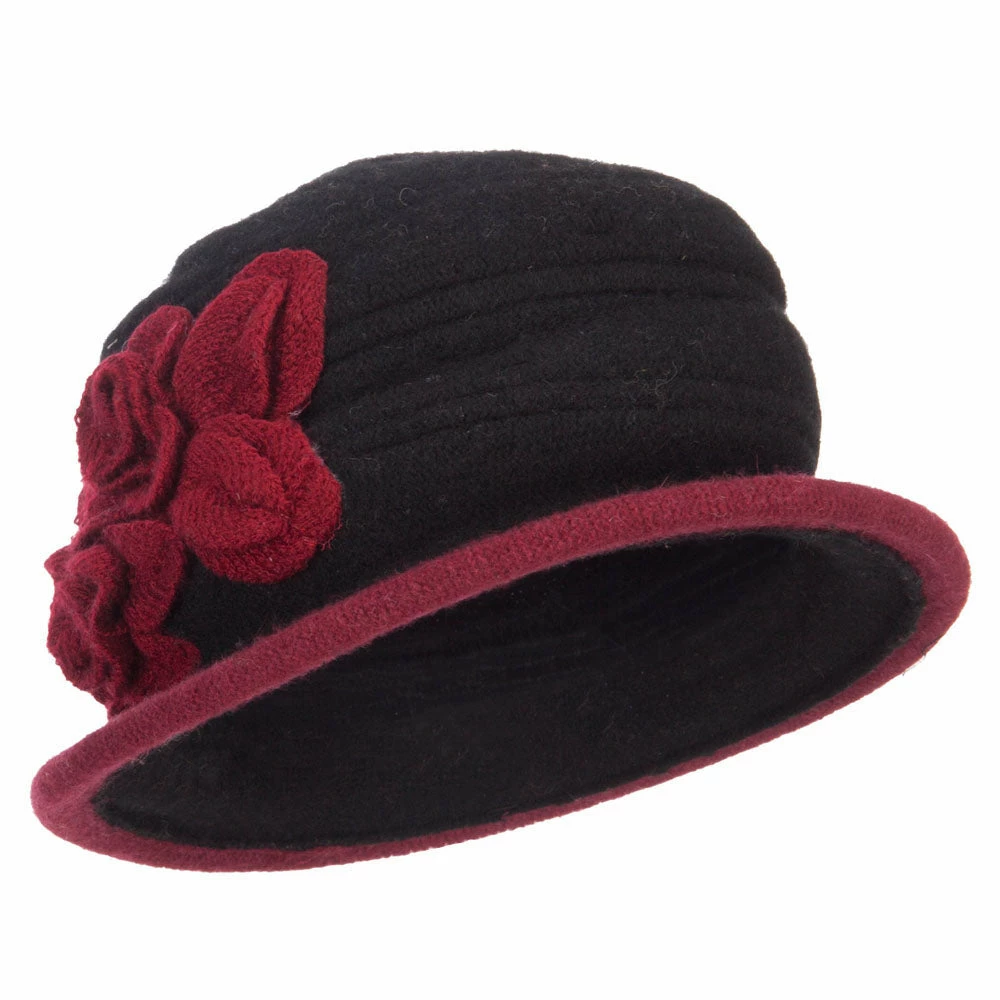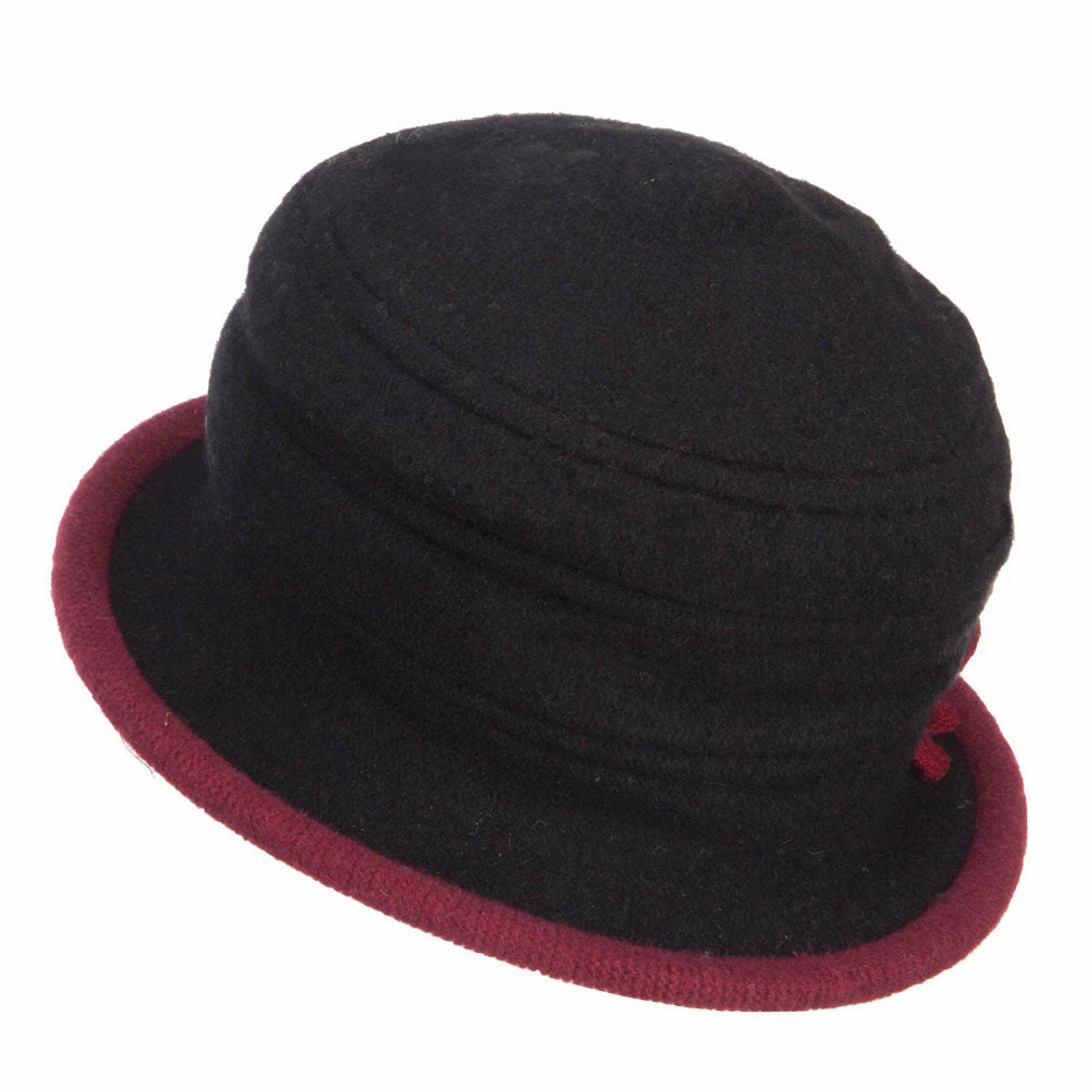 Decorative women’s boiled wool bucket hat for winter outings.