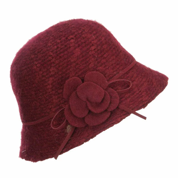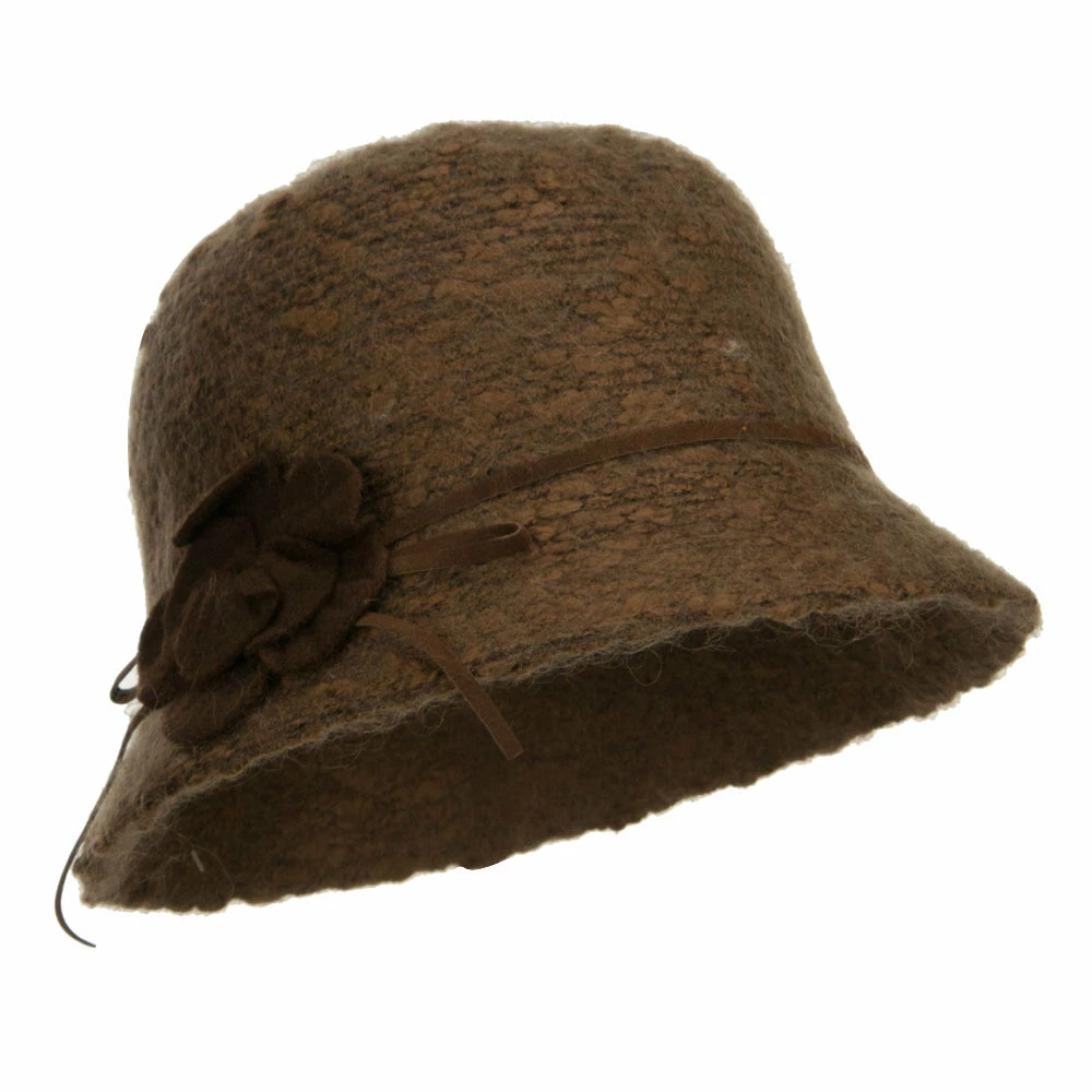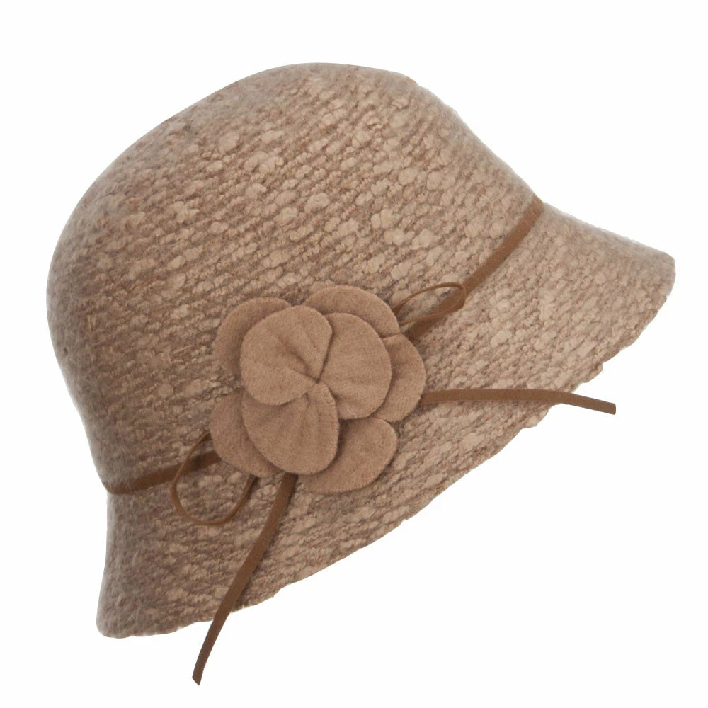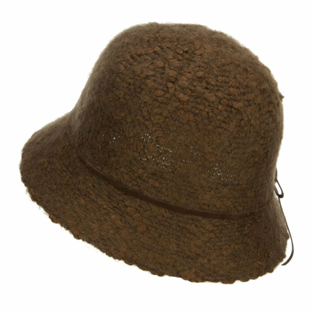 Thick texture mohair yarn blend cloche bucket hat for ladies.