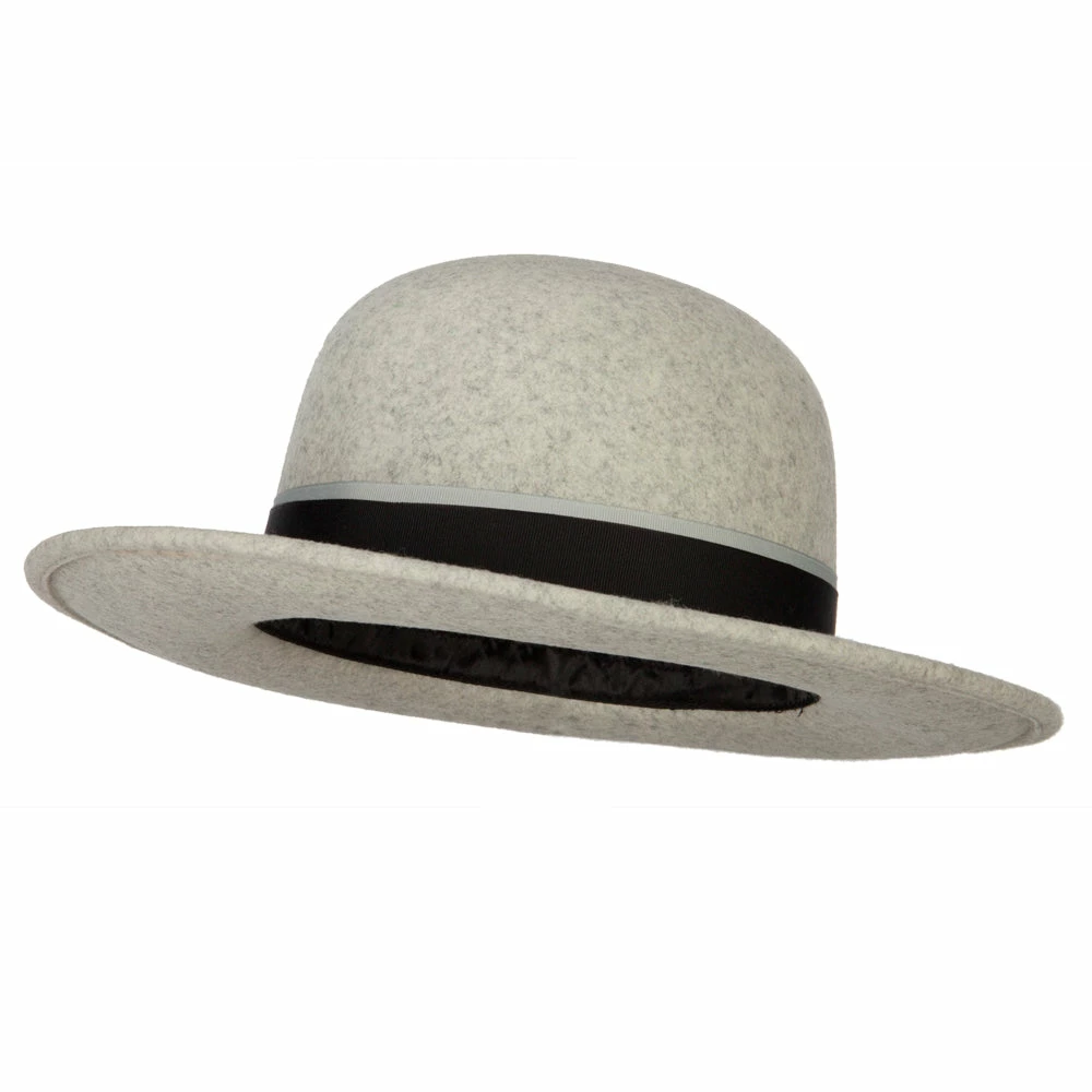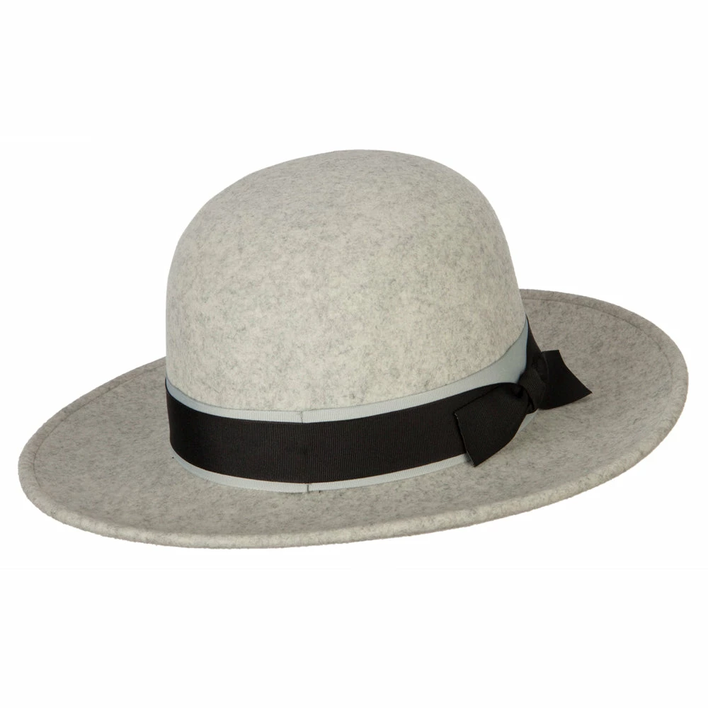 Women’s Wool Felt Black and Grey Ribbon Trim Accented Bucket Hat