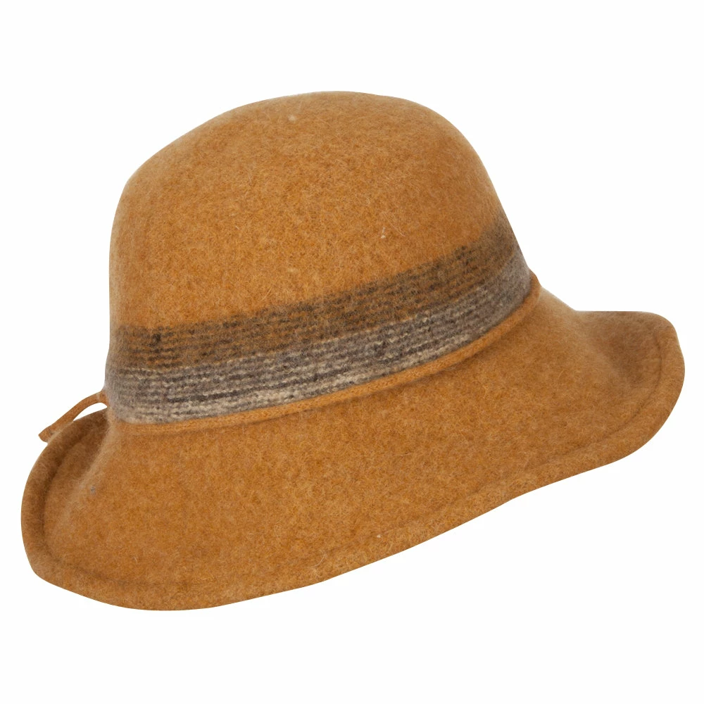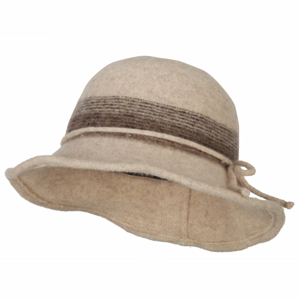 Women’s Wool Stripe Detailed Wired Short Brim Bucket Hat