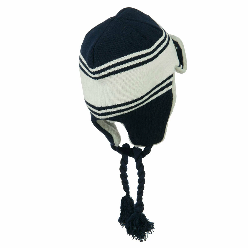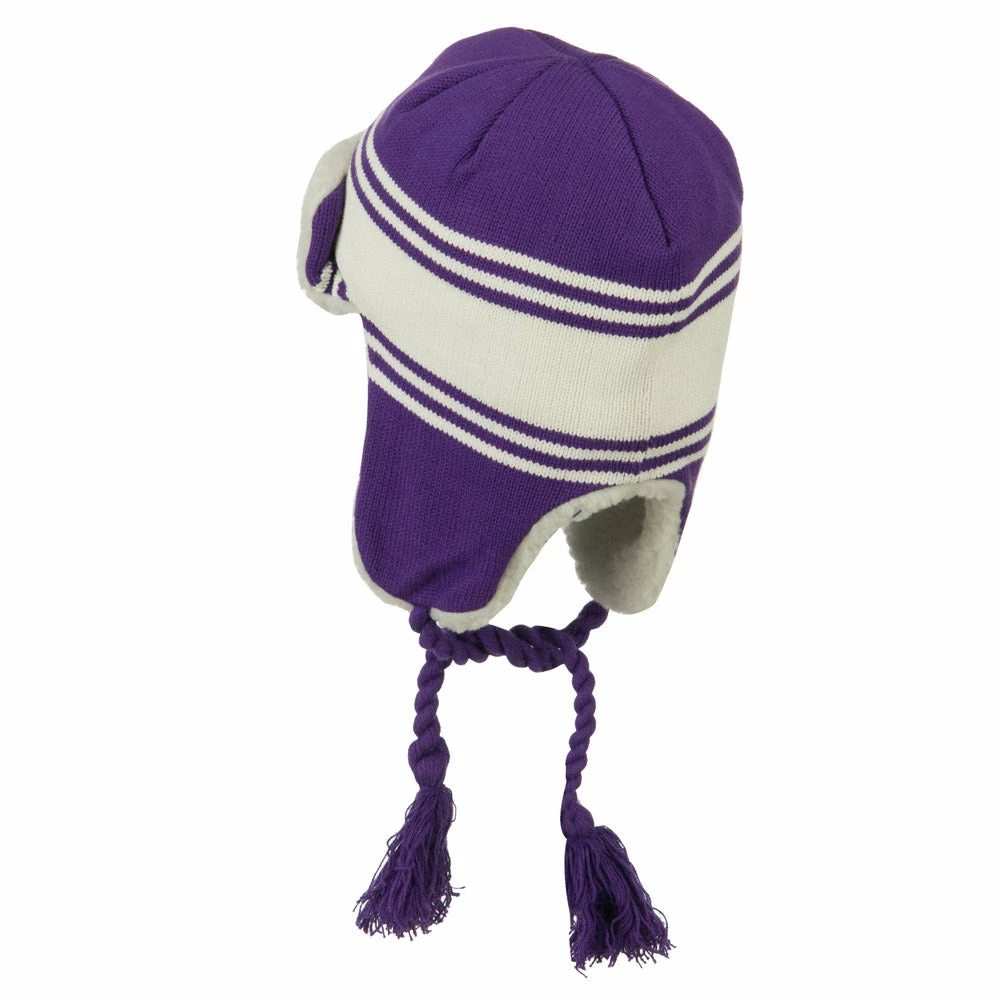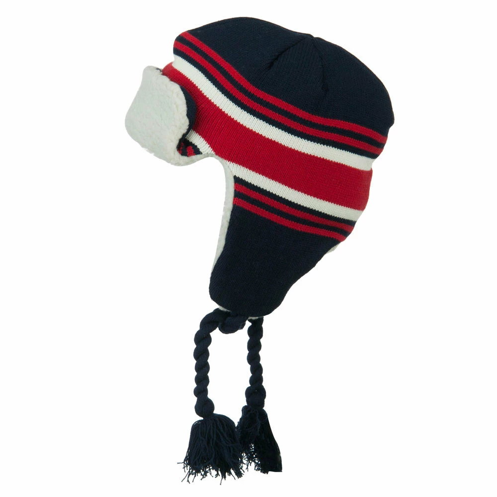 Acrylic knit aviator style trooper hat with accented stripes.