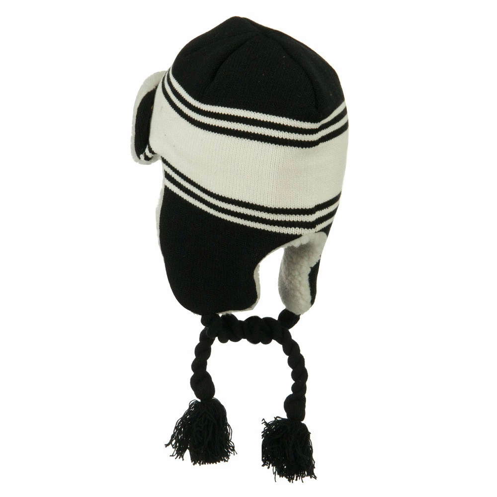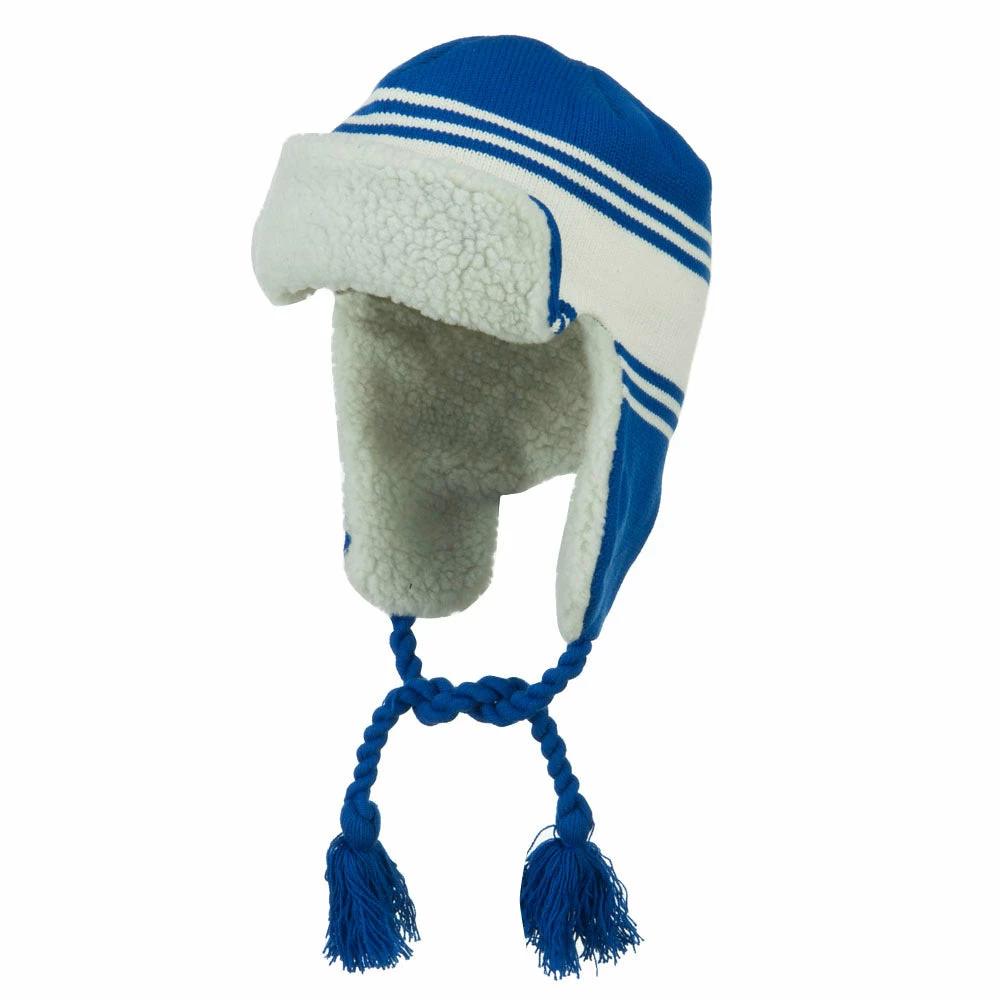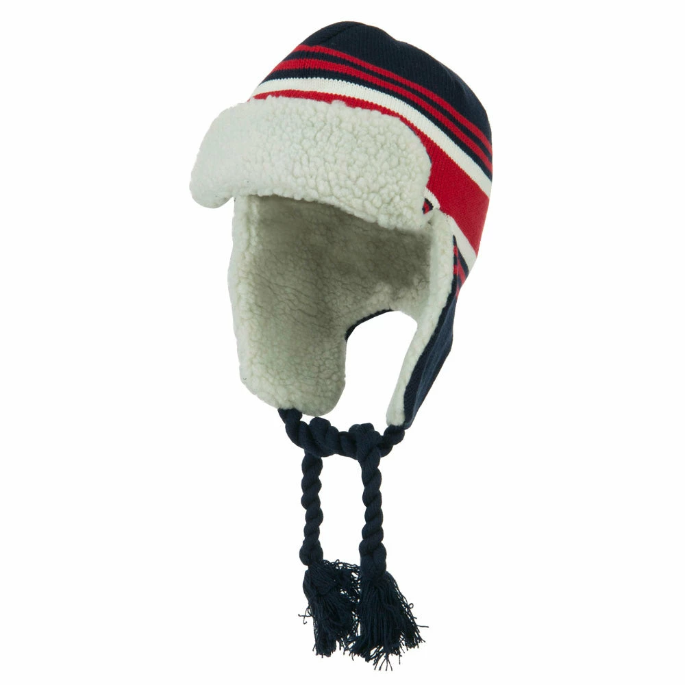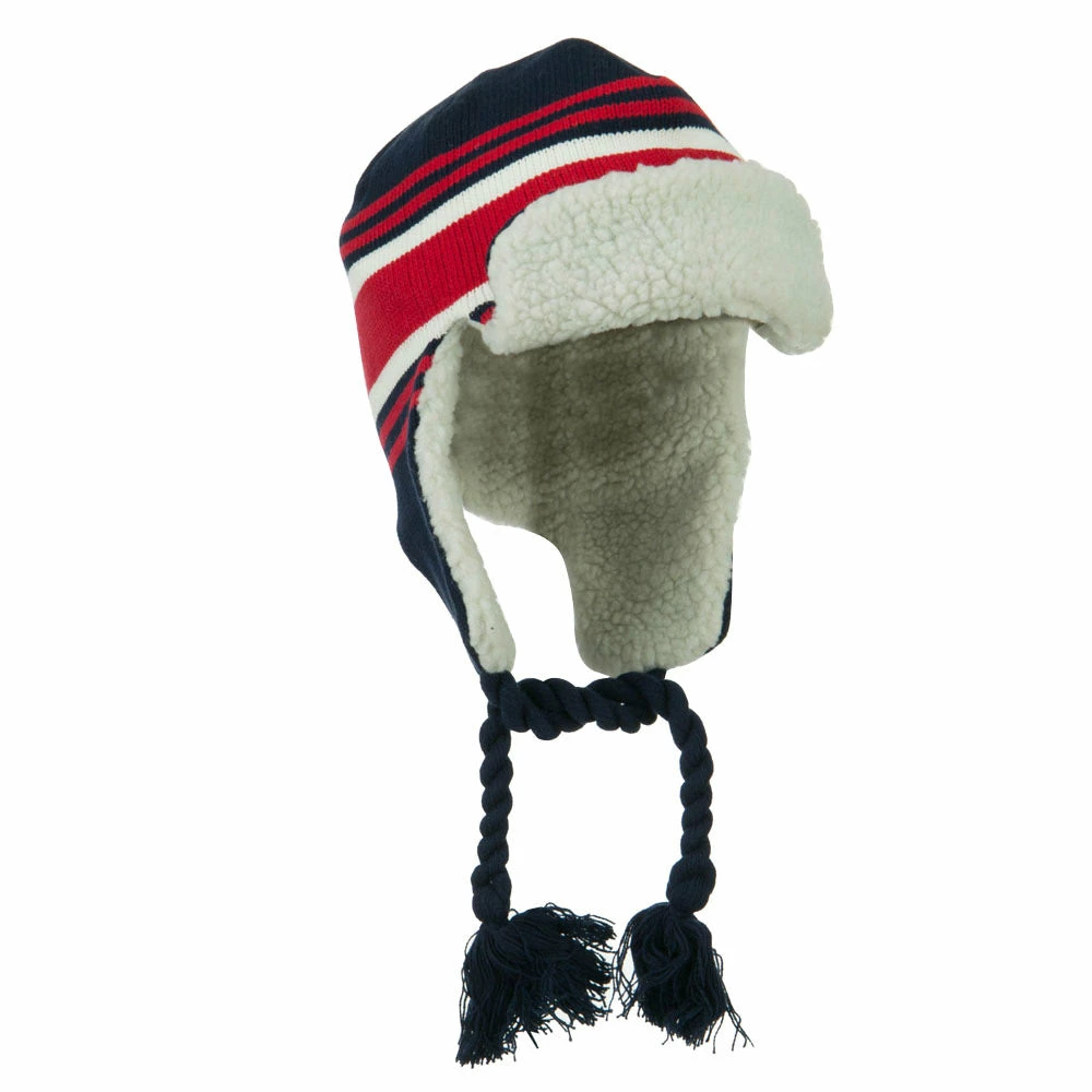 Acrylic knit aviator style trooper hat with accented stripes.
