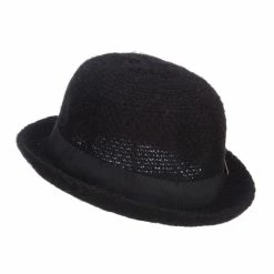Jeanne Simmons Women’s Band With Pom Pom Accented Large Brim Bowler Wool Fedora Hat
