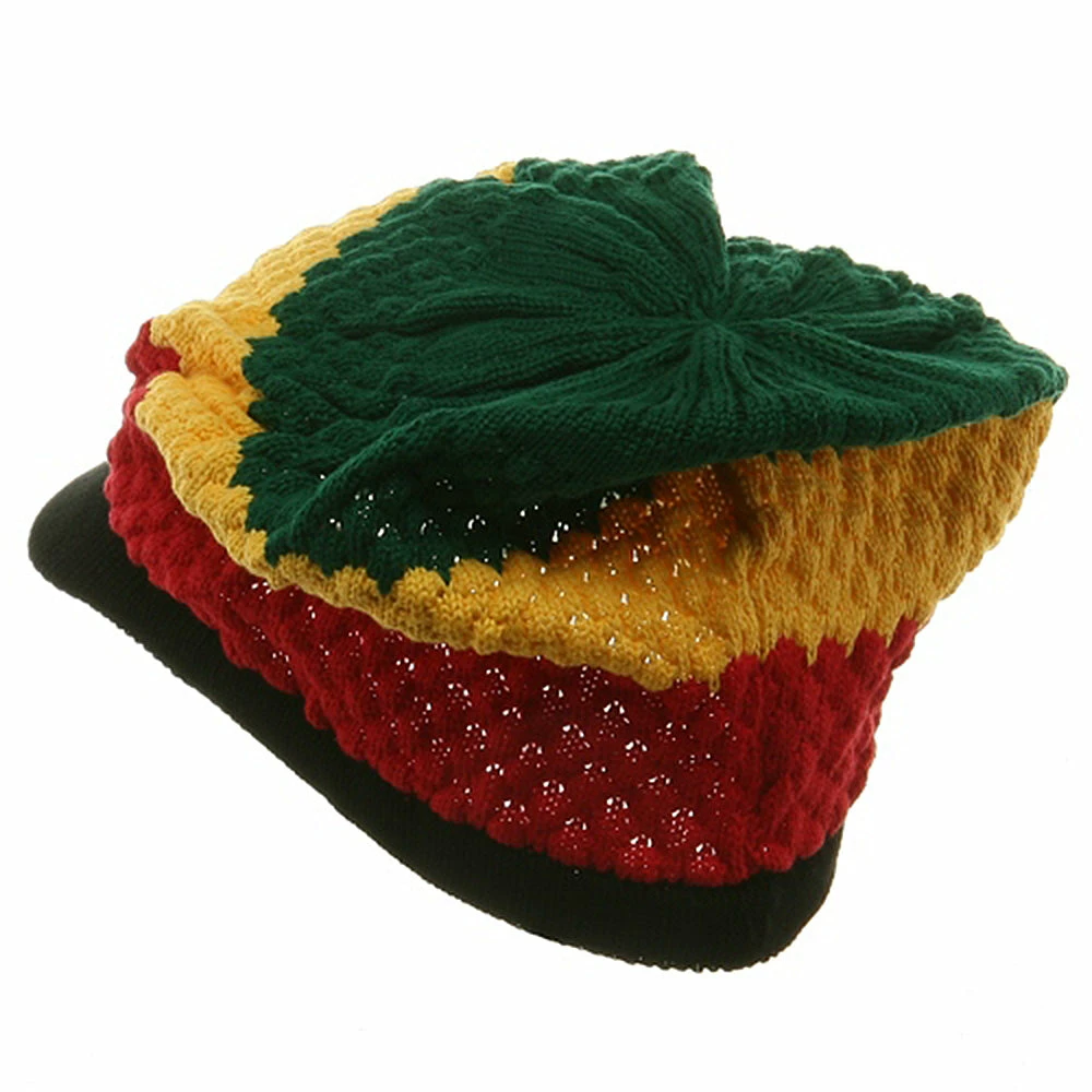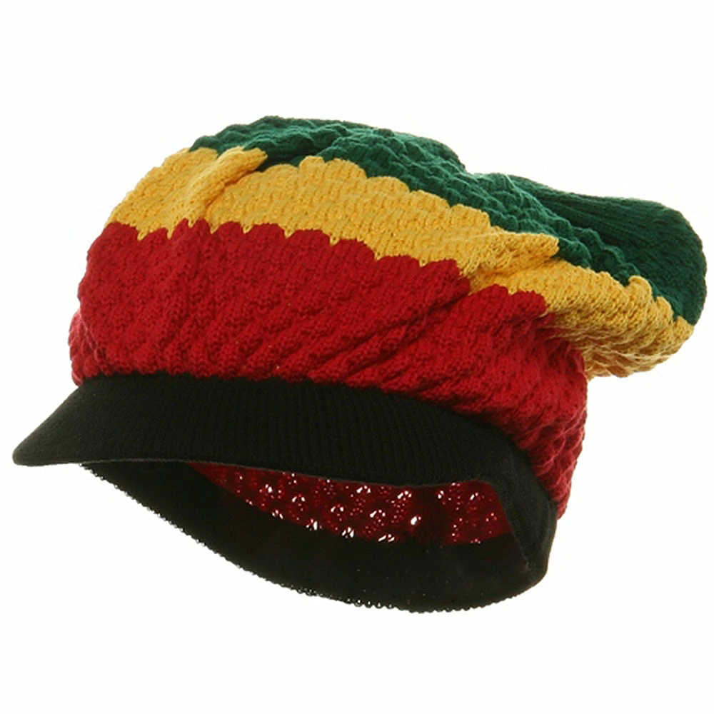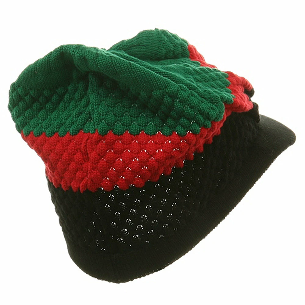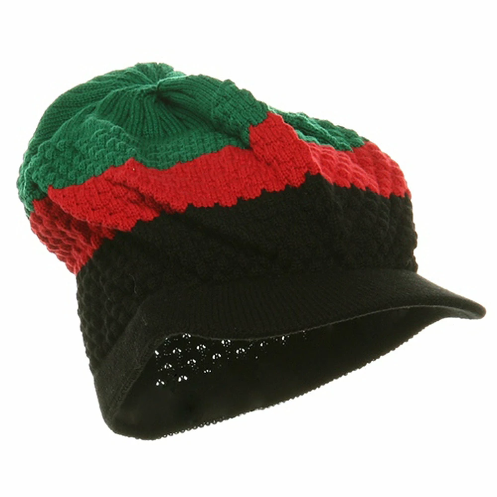 You’d make even Bob Marley jealous with one of our cool new tricolor beanie visors. With its breathable diamond stitch and three thick stripes of green, yellow and red, this hat is sure to be a hit no matter what crowd you travel in. While sporting a 2 1/4″ bill and stretchable elastic band in the back, this cap is big enough for the brother or sister, with or without dreads. Squash it, fold it or toss it, no matter what, it always comes out looking “cool”.