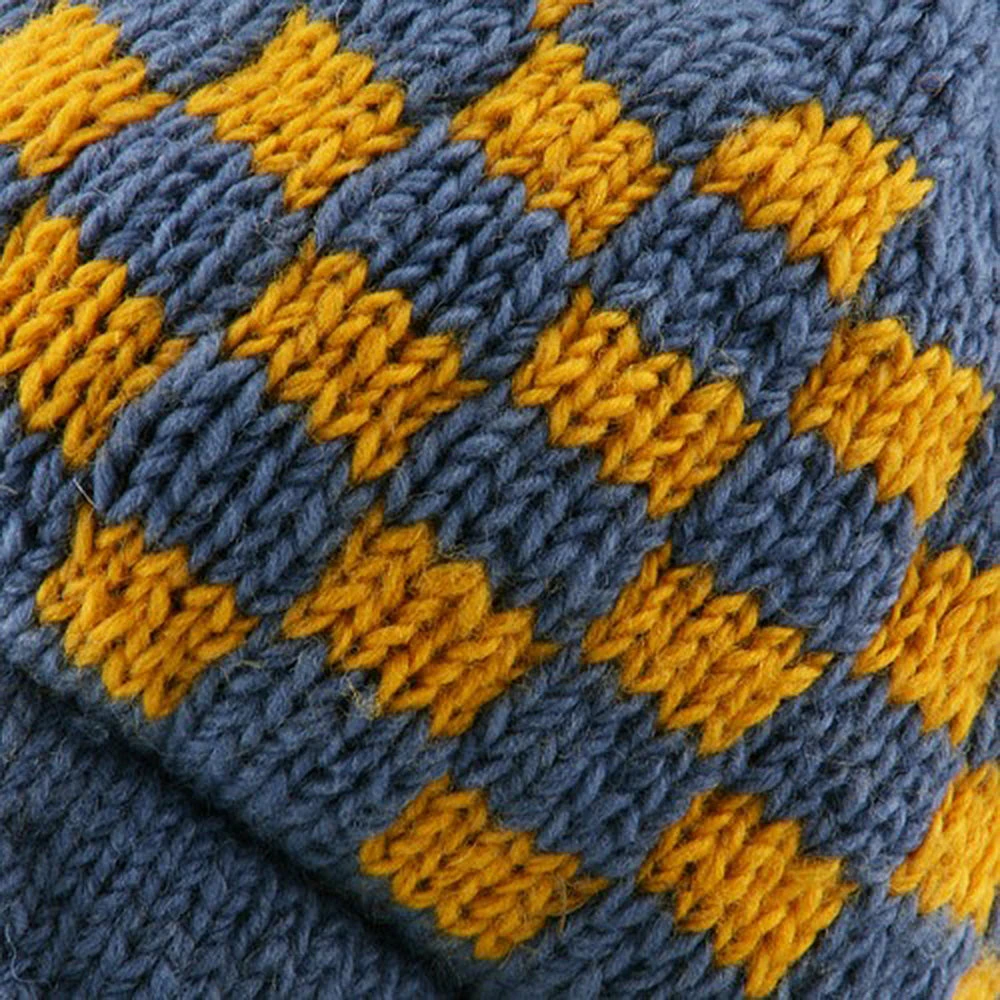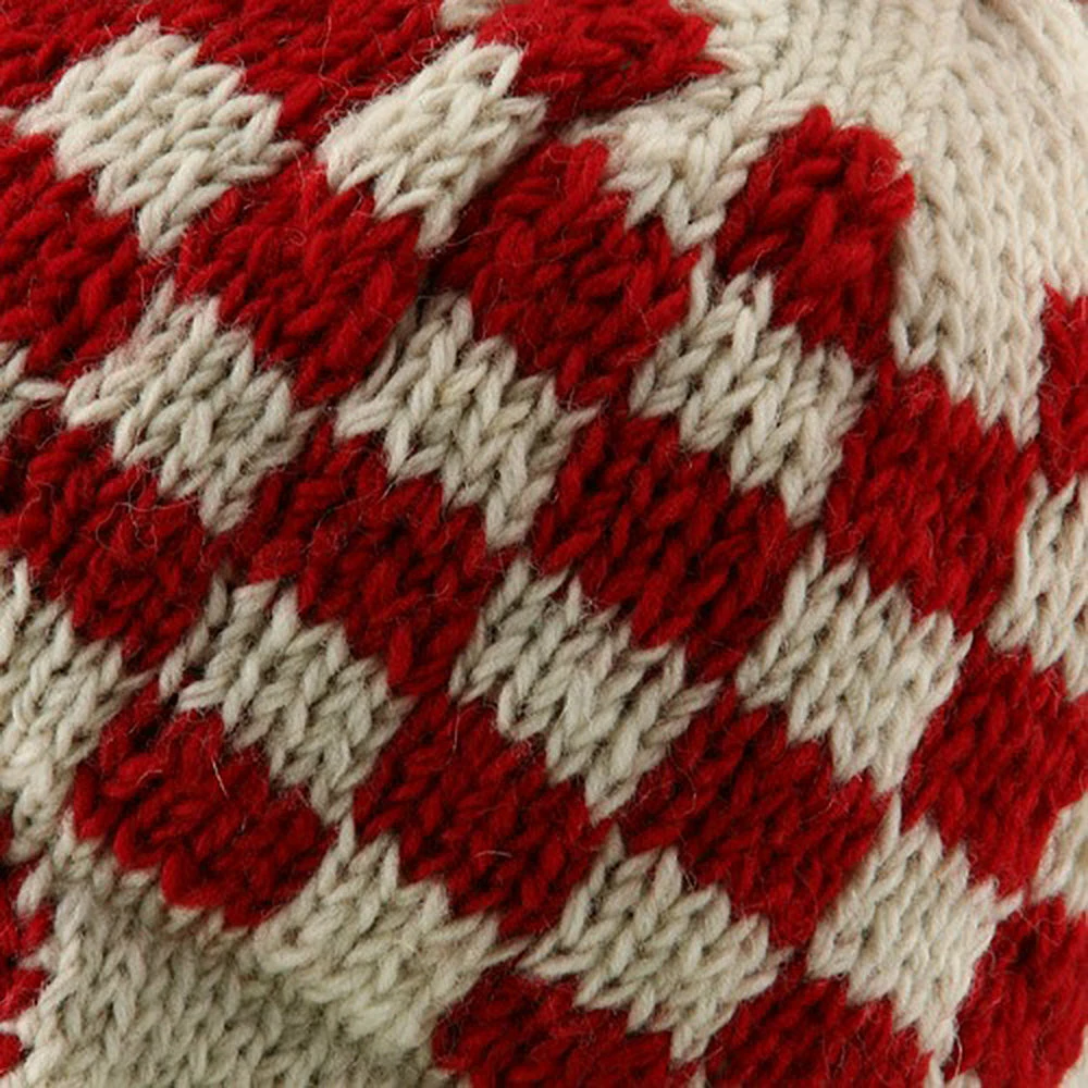 This chunkyChecker Jacquard Beanie with subtle earflaps and distinctive Himalayan style will keep you well insulated from the cold of winter. Constructed out of 1 panel of thick, medium weave, traditional knit, for a stretchy fit, the hat is fully lined in a soft fleece fabric, for added insulation and comfort. The hat is woven with a simple yet beautiful band of black checkers on a cream base around the middle of the crown, with triangular earflaps with braided ties at the ends for fastening. The top of the hat is finished off with a matching black braid of wool. Hand wash this durable hat in cold water to keep it looking new and on your head for many seasons of cold.