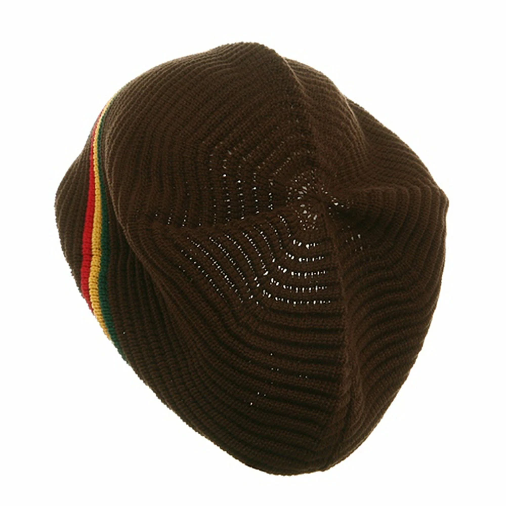Solid in color with a splash of red, green and yellow stripes at the middle of crown, ourMedium Crown New rasta Beanie Hat offers a lot of comfortable room and coverage for your outings this winter.The round crown is constructed out of 1 panel of fine, tight crocheted material and measures 11 inches wide and 9 1/2 inches deep to keep your head warm with enough room to keep all of your locks under wrap.Made from 100% cotton, this beanie hat is soft and crocheted material.As there is elastic band hidden at the tip of crown of hat, it is one size that fits most head comfortably, fitting up to XXXL, with stretchable size.This hat ensures a snug fit as well of stylish look.Check out in our many other amazing colors as well.