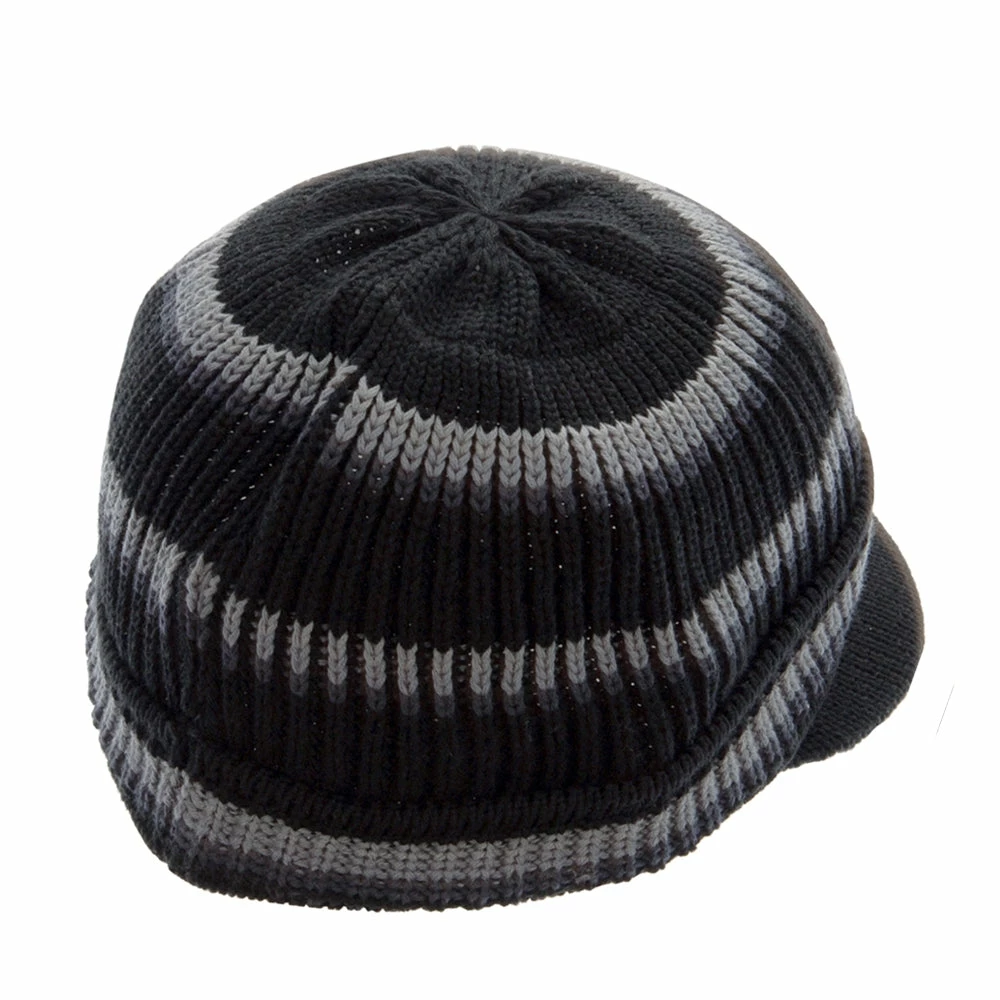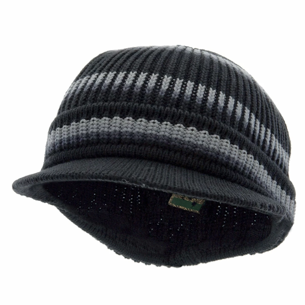Dress your head in this thick, snazzy striped beanie with visor to protect you from the elements in relaxed style. The hat is constructed out of 1 panel of chunky cotton rib knit, making this a stretchy, flexible hat with a lot of give. There is 1 gather at the top of the crown for a roomy dome shape with enough space for your locks. The elegant olive hat is decorated with contrasting stripes of khaki, brown and black woven into the textured knit. An elasticized cuff bands the opening to ensure a secure comfortable fit while the generous bill of 2-1/4″ protects you from sun or snow. The natural material will naturally keep you ventilated while retaining your body temperature. Lightweight and easy to wear, this hat will serve you well.