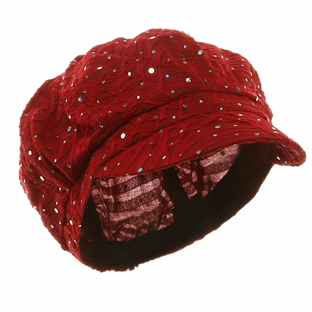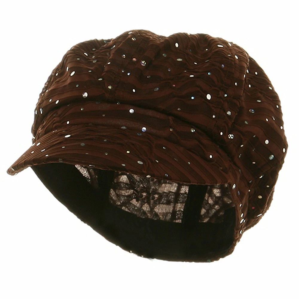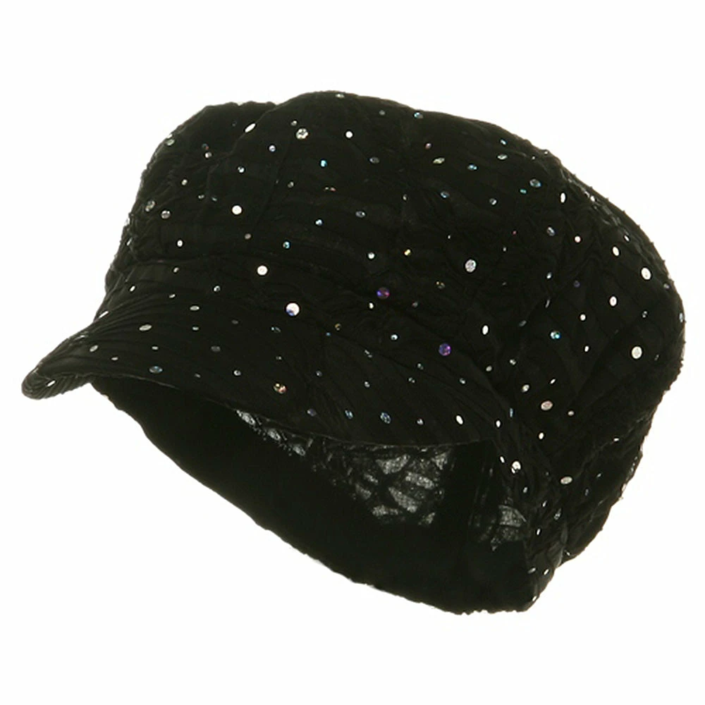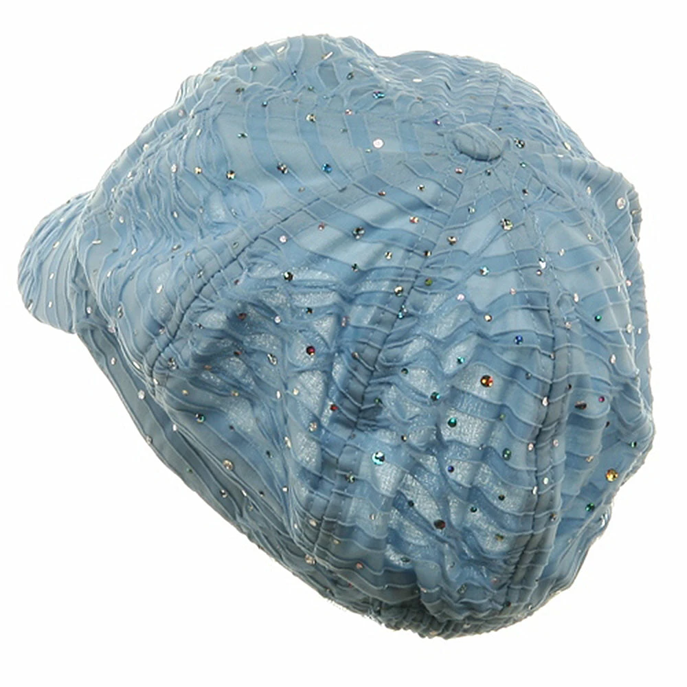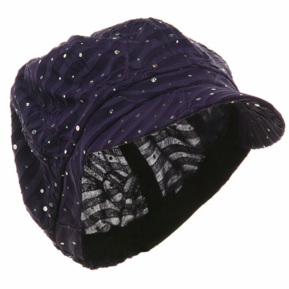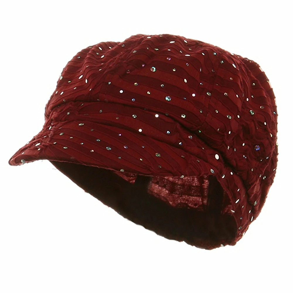 Allow yourself to sparkle and shine in our Glitter Newsboy cap. Made from a unique blend of cotton and metallic, this thin ribbed and textured hat combines the traditional look of a newsboy cap, with a modern and glamorous touch. Featuring 8 panels with a button top, this roomy 4″ deep crown is sprinkled with holographic dots from the tip of the 2 1/4′” long bill to the elastic closure in the back . Fully lined for your added comfort and luxury, this hat is definitely for those who love to make a statement. So go ahead and let yourself shine in any one of these great colors. Just be warned sunglasses are not included!