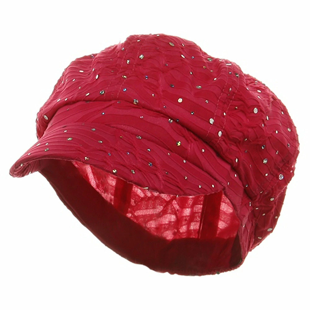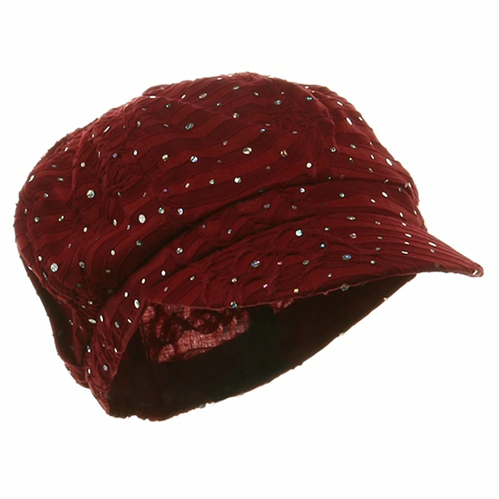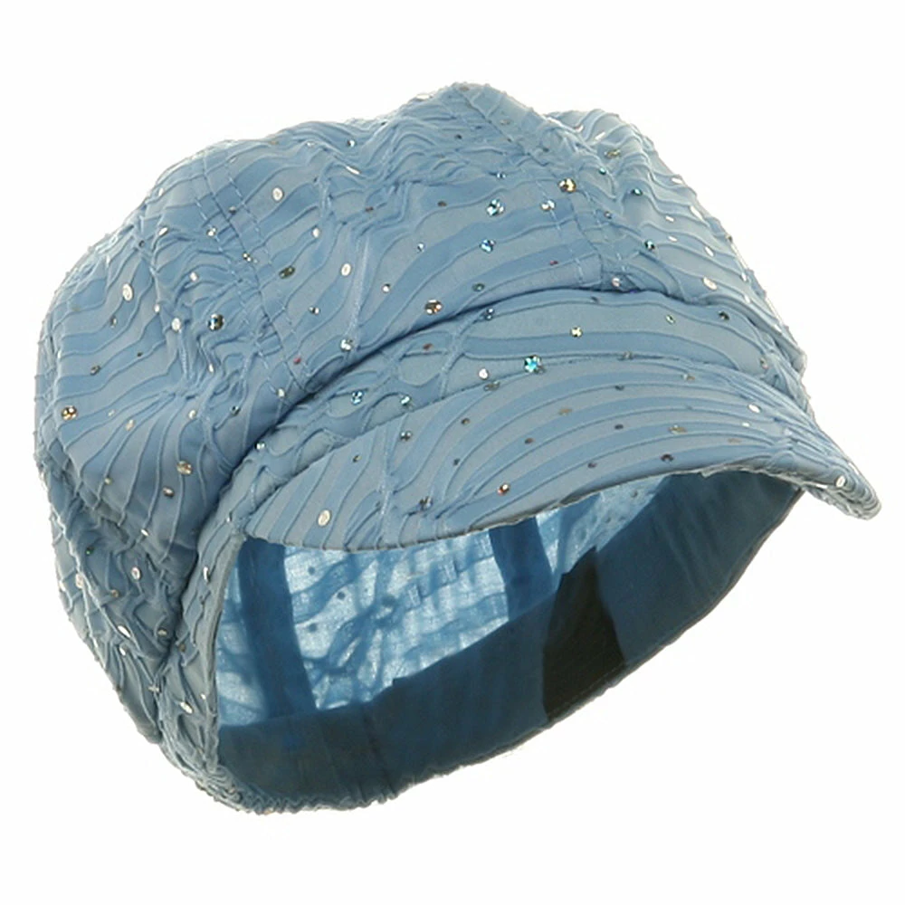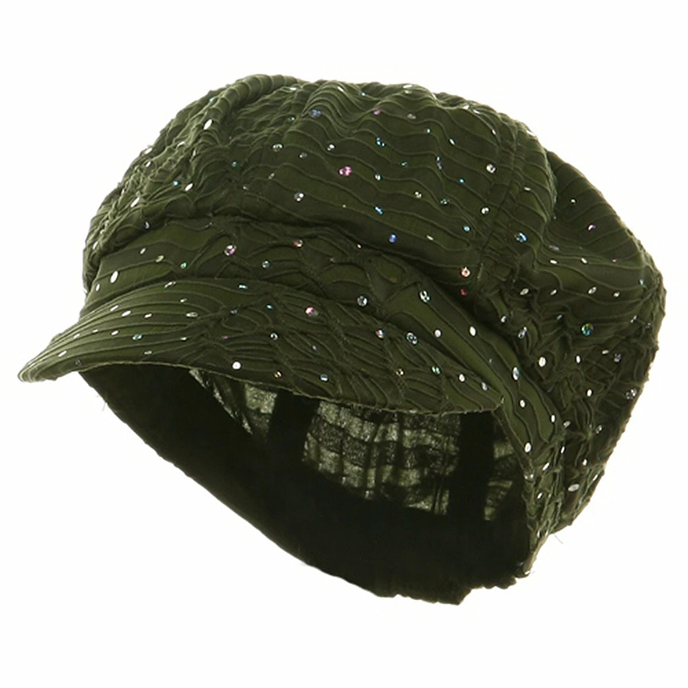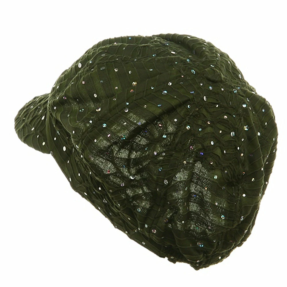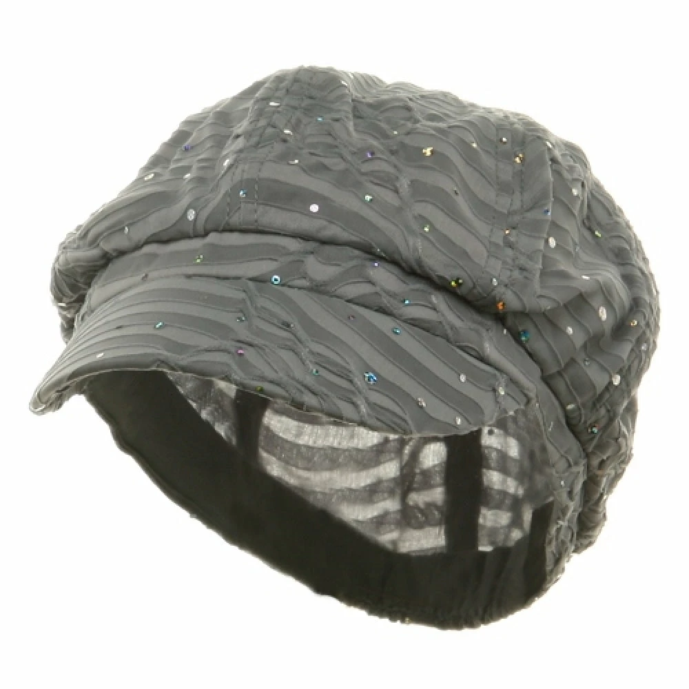 Allow yourself to sparkle and shine in our Glitter Newsboy cap. Made from a unique blend of cotton and metallic, this thin ribbed and textured hat combines the traditional look of a newsboy cap, with a modern and glamorous touch. Featuring 8 panels with a button top, this roomy 4″ deep crown is sprinkled with holographic dots from the tip of the 2 1/4′” long bill to the elastic closure in the back . Fully lined for your added comfort and luxury, this hat is definitely for those who love to make a statement. So go ahead and let yourself shine in any one of these great colors. Just be warned sunglasses are not included!