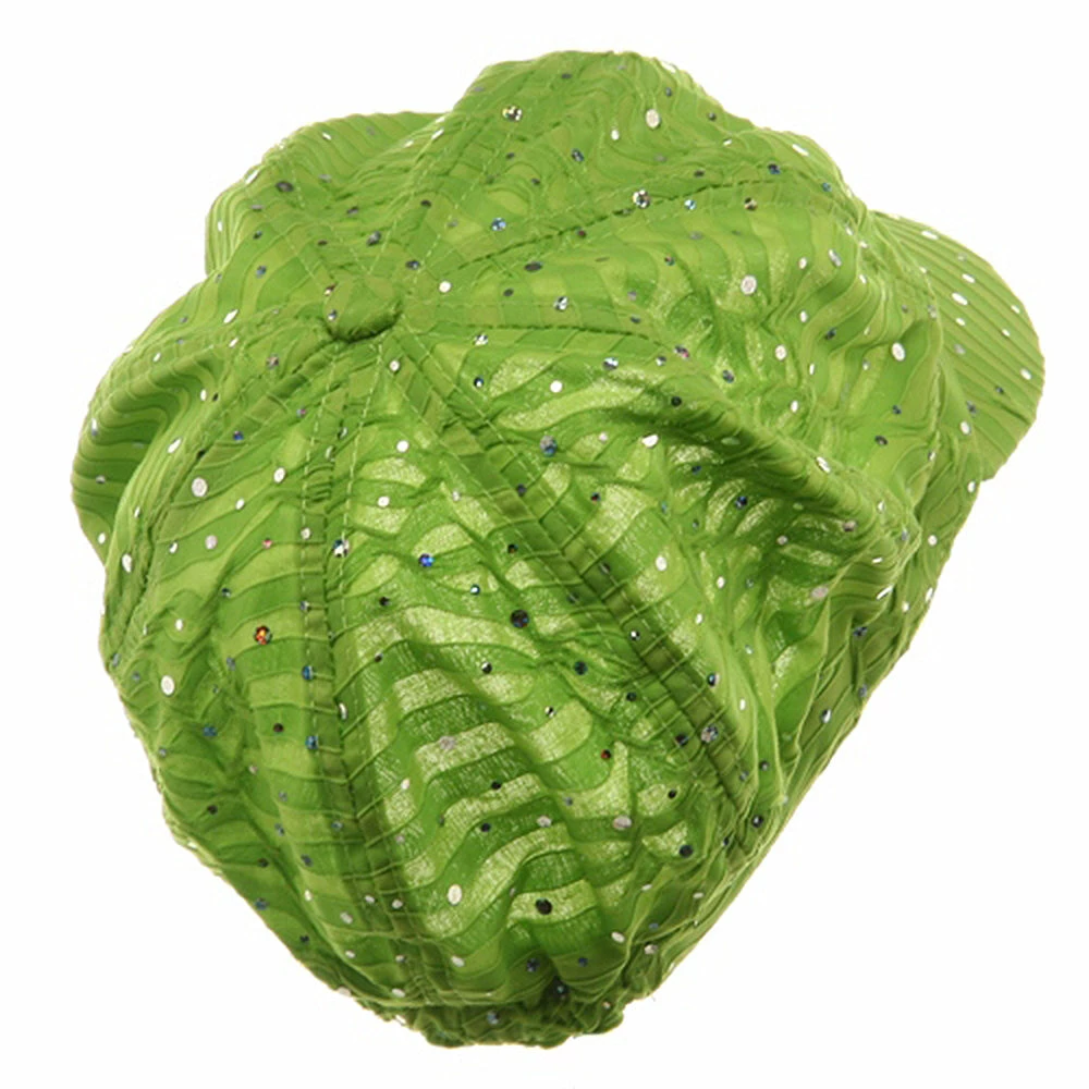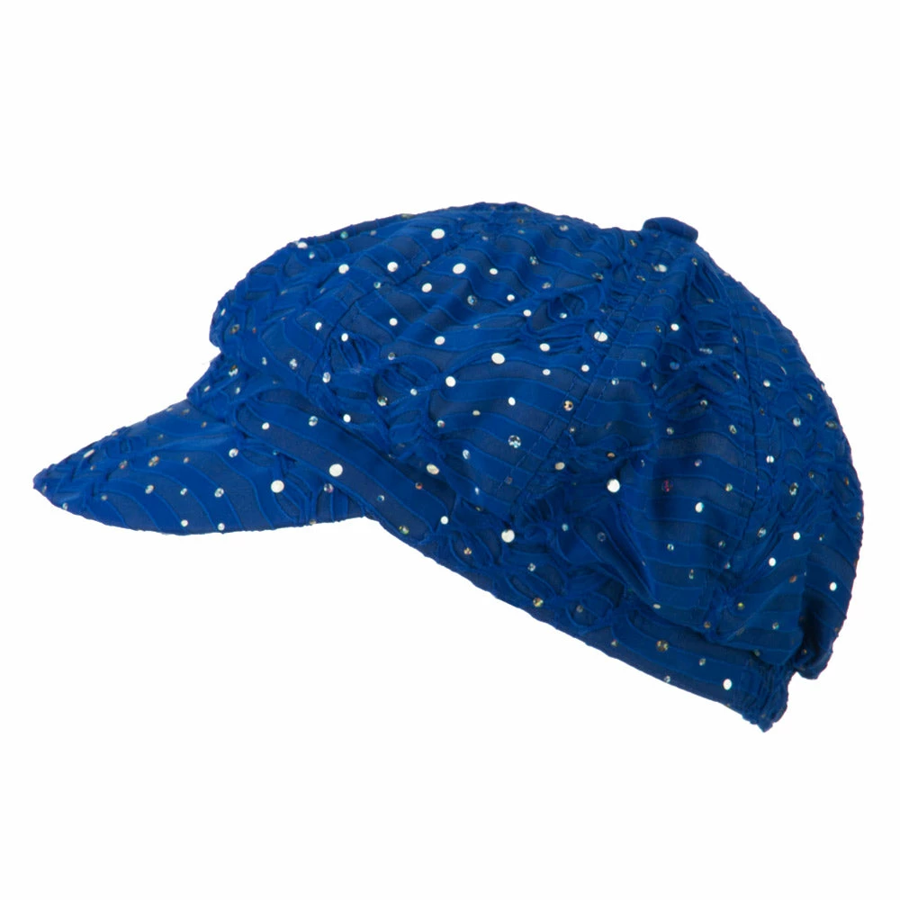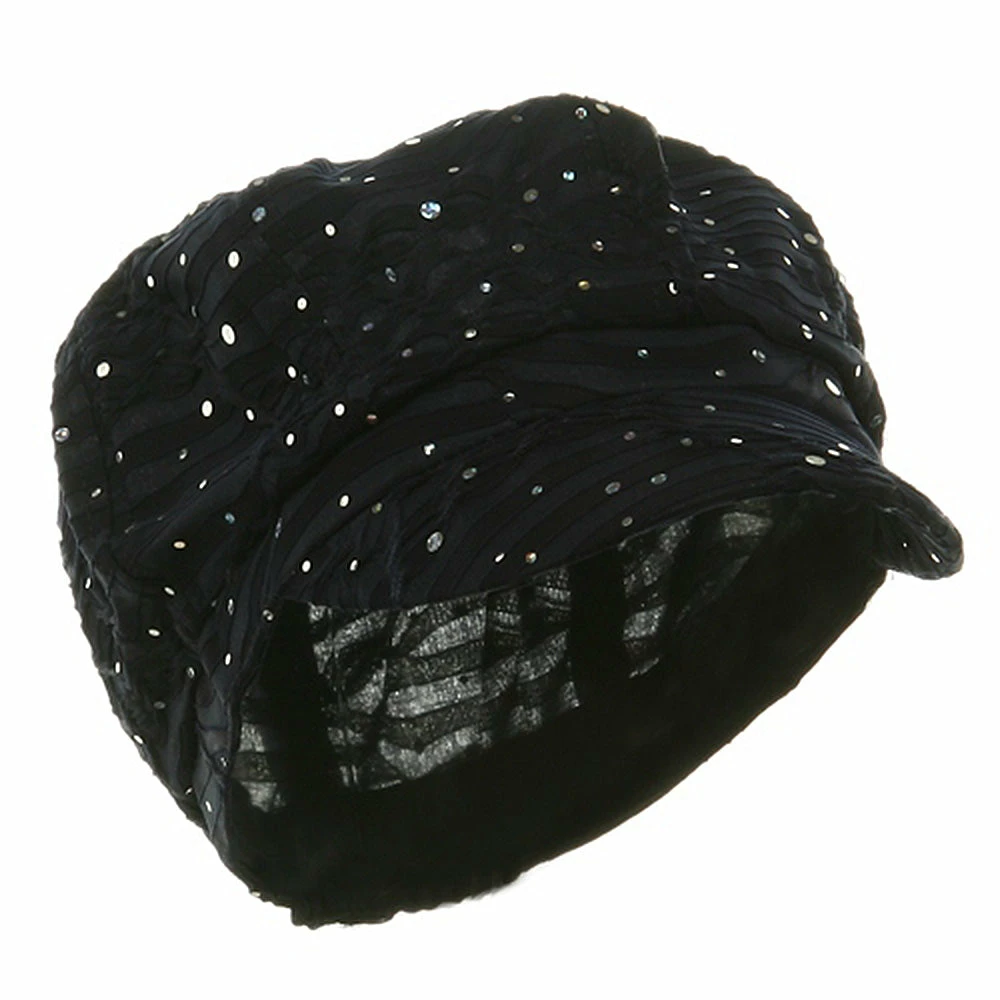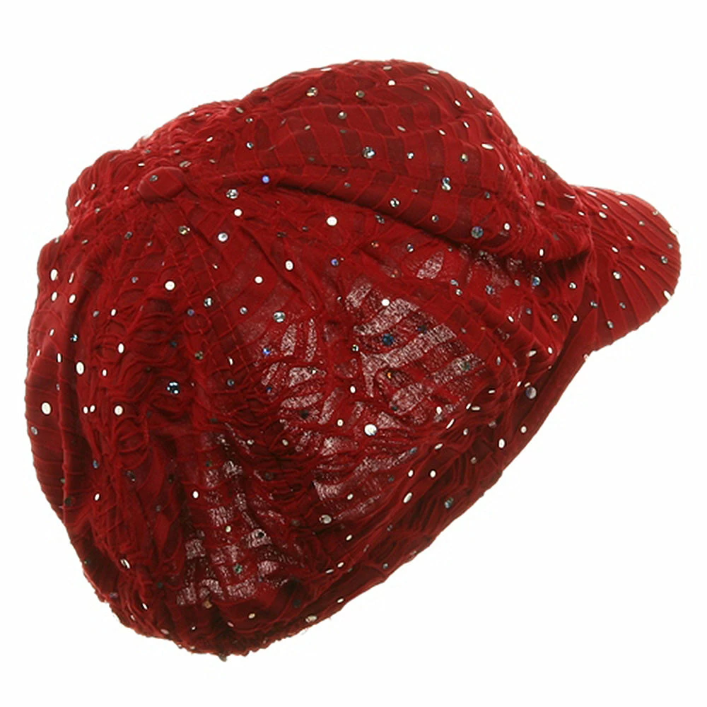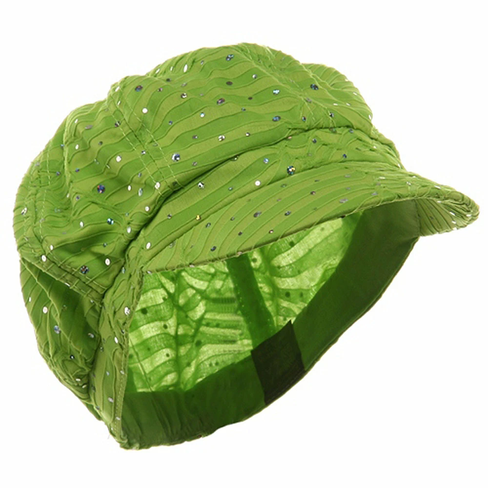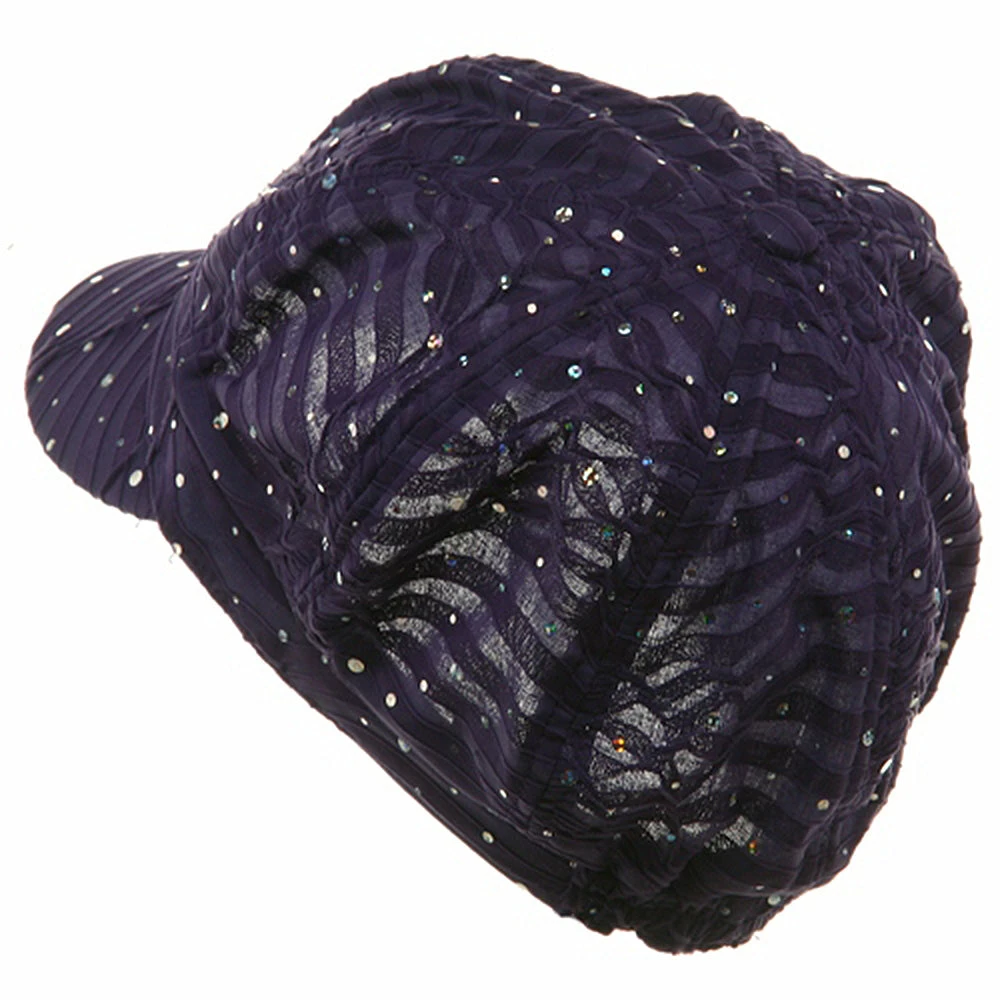 Allow yourself to sparkle and shine in our Glitter Newsboy cap. Made from a unique blend of cotton and metallic, this thin ribbed and textured hat combines the traditional look of a newsboy cap, with a modern and glamorous touch. Featuring 8 panels with a button top, this roomy 4″ deep crown is sprinkled with holographic dots from the tip of the 2 1/4′” long bill to the elastic closure in the back . Fully lined for your added comfort and luxury, this hat is definitely for those who love to make a statement. So go ahead and let yourself shine in any one of these great colors. Just be warned sunglasses are not included!