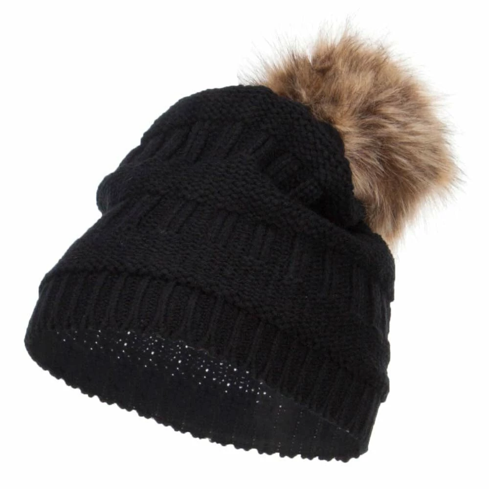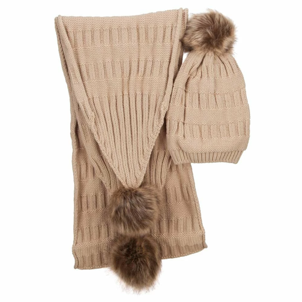 Perfect winter gift set of knit pom beanie and pom scarf for ladies.