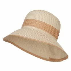 Woman’s paper braid bucket hat with wide brim.