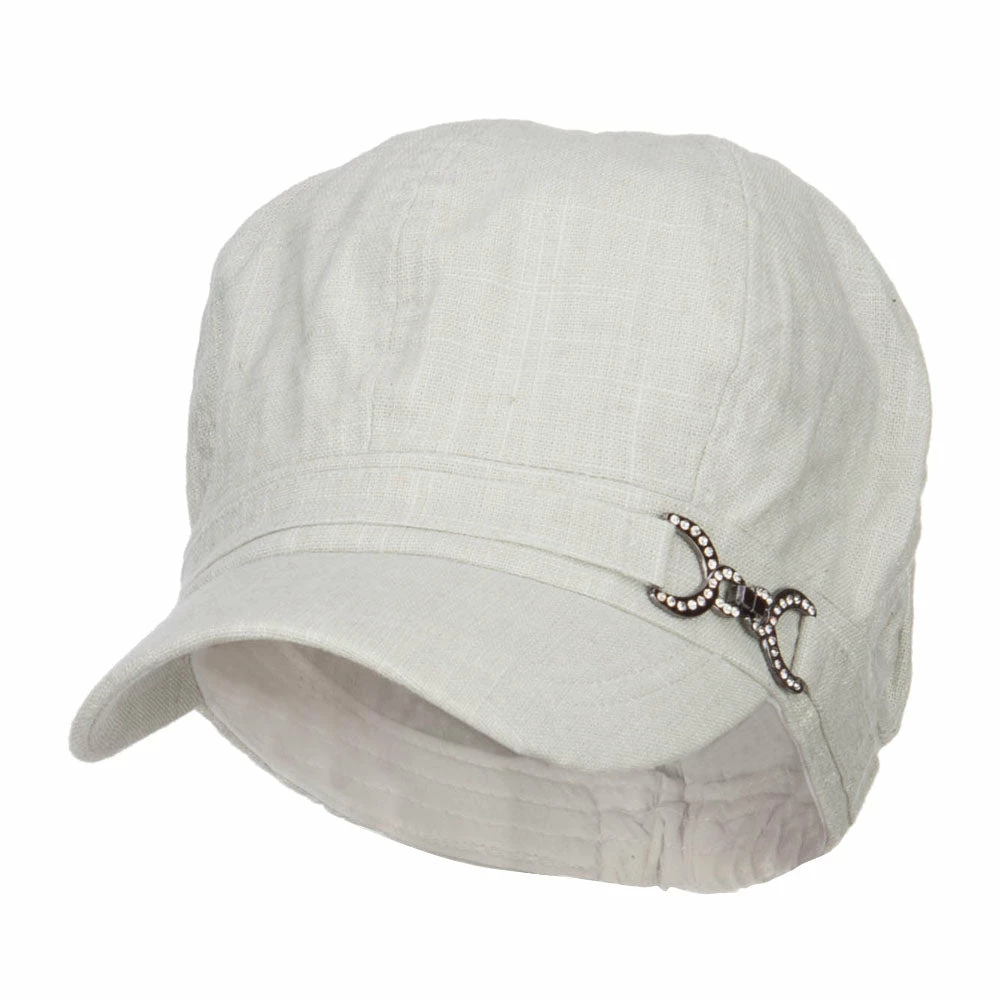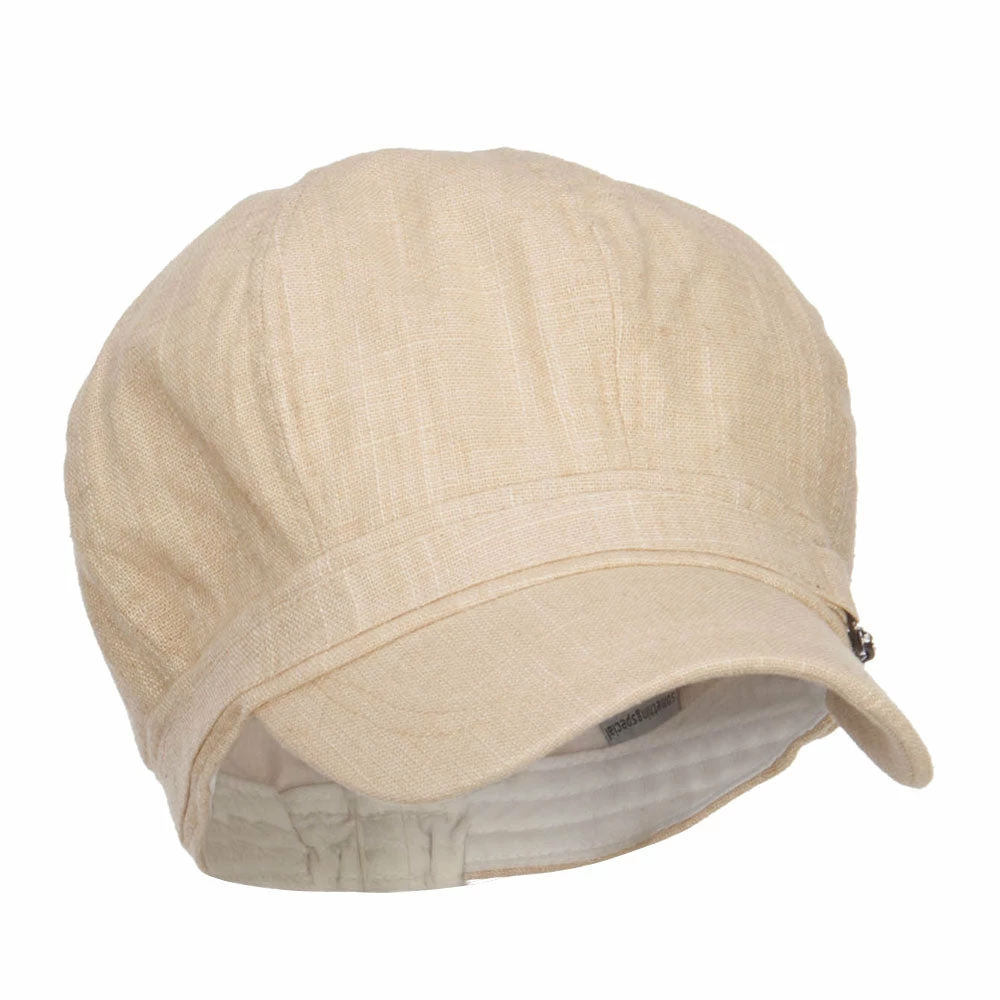 Chic linen newsboy hat for ladies.
