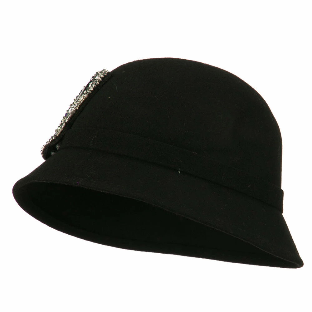 Stylish and trendy cloche hat for ladies featuring intricate detail.