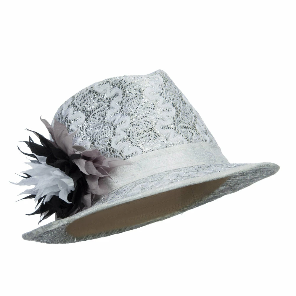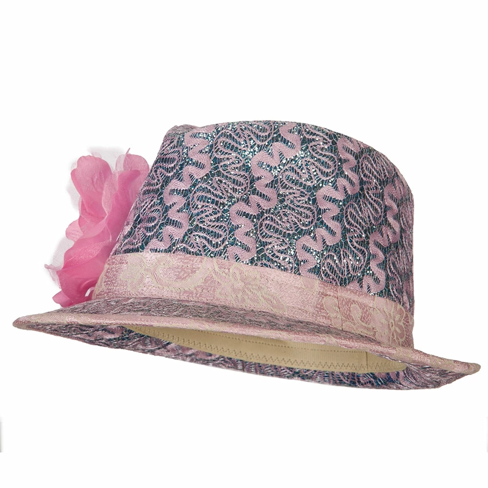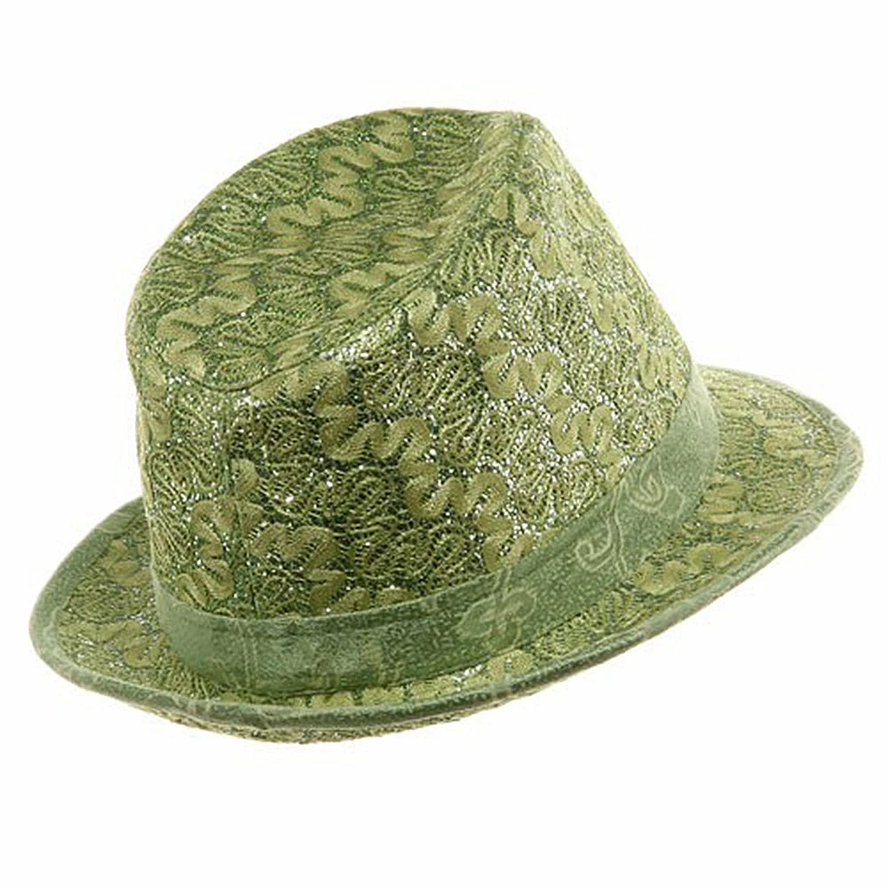 Try a Hollywood twist on a classic fedora in ourpolyester lurex fedora. Ideal for a night on the town, this shinyhat is constructed from a metallic lurex material and is covered in a snake-like streamer pattern, perfect for parties or special holidays. Featuring a fully lined 4″ deep crown withfabric hat band, and a 2″ wide brim, also lined on its outer edges with afabric trim, this hat is sure to be a smashing success no matter where you wear it. Available in Silver, Lime, Gold, Turquoise, Pink and .